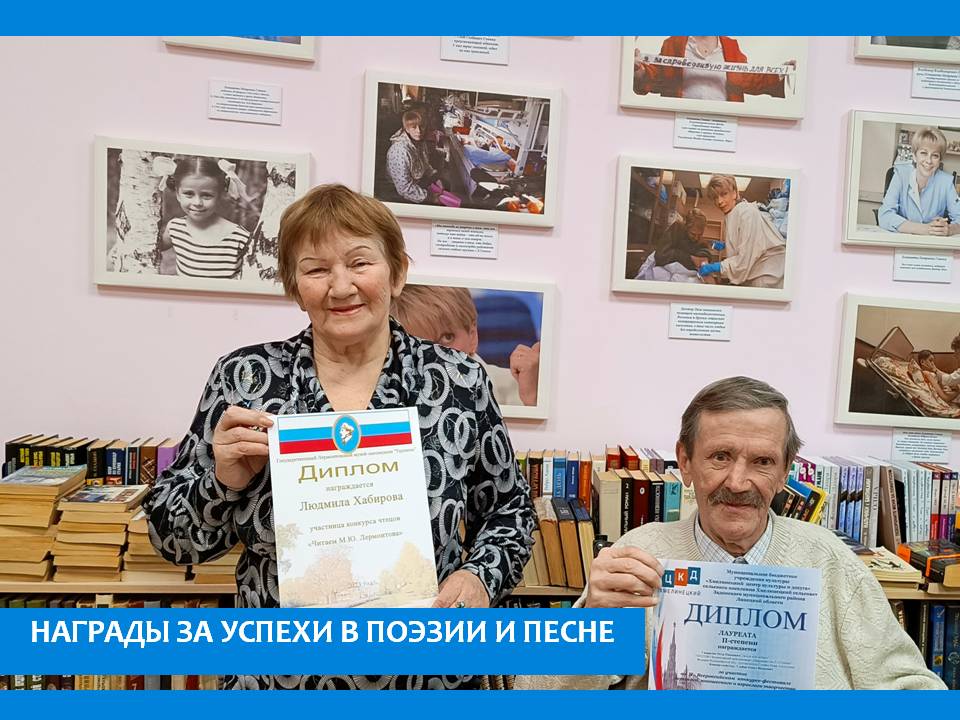 Скучать некогда и подвести итоги той или иной деятельности помогают конкурсы, которые стимулируют активность. Участников оценивают не друзья и родственники, а жюри, состоящее из мастеров своего дела. В ноябре Дипломом Государственного Лермонтовского заповедника «Тарханы» награждена Хабирова Людмила Геннадьевна за чтение стихов М.Ю.Лермонтова и Гаврилов Петр Иванович, который удостоен Диплома лауреата 2 степени за участие во 2-ом Всероссийском конкурсе - фестивале «Мы силой единой сильны».