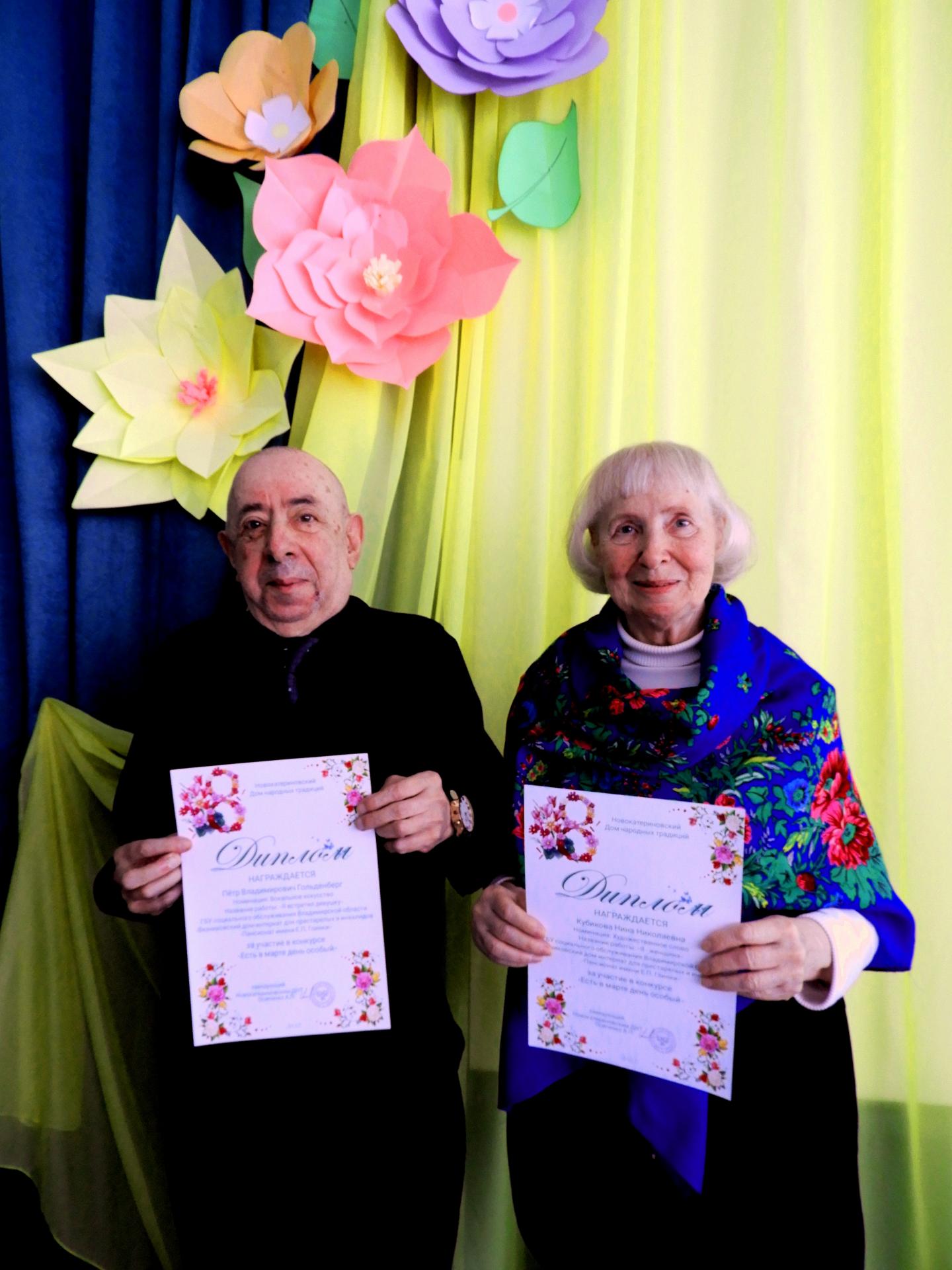 Жители Вязниковского Пансионата уже не представляют себя вне сетевых конкурсов, организованных различными учреждениями культуры. В начале марта приняли участие в творческом конкурсе «Есть в марте день особенный», организатором которого стал Новокатериновский Дом Народных традиций Донецкой Народной Республики. Жители Пансионата показали себя в двух номинациях «Художественное слово» и «Вокальное искусство». Итоги конкурсной программы подведены, и наши участники получили долгожданные дипломы. Молодцы!
