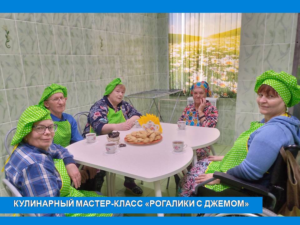 В «Домашней гостиной» Вязниковского Пансионата сегодня готовили одну из самых простых и вкусных выпечек. Кулинары замесили нежное песочное тесто, работать с которым сплошное удовольствие: не липнет к рукам и легко придает форму. Уложив вкусную начинку из домашнего джема на вырезанные треугольнички, сформировали рогалики. Пока те выпекались, все дружно приготовили стол под чайную церемонию. Вкусное угощение с пылу с жару «разлетелось» вмиг.