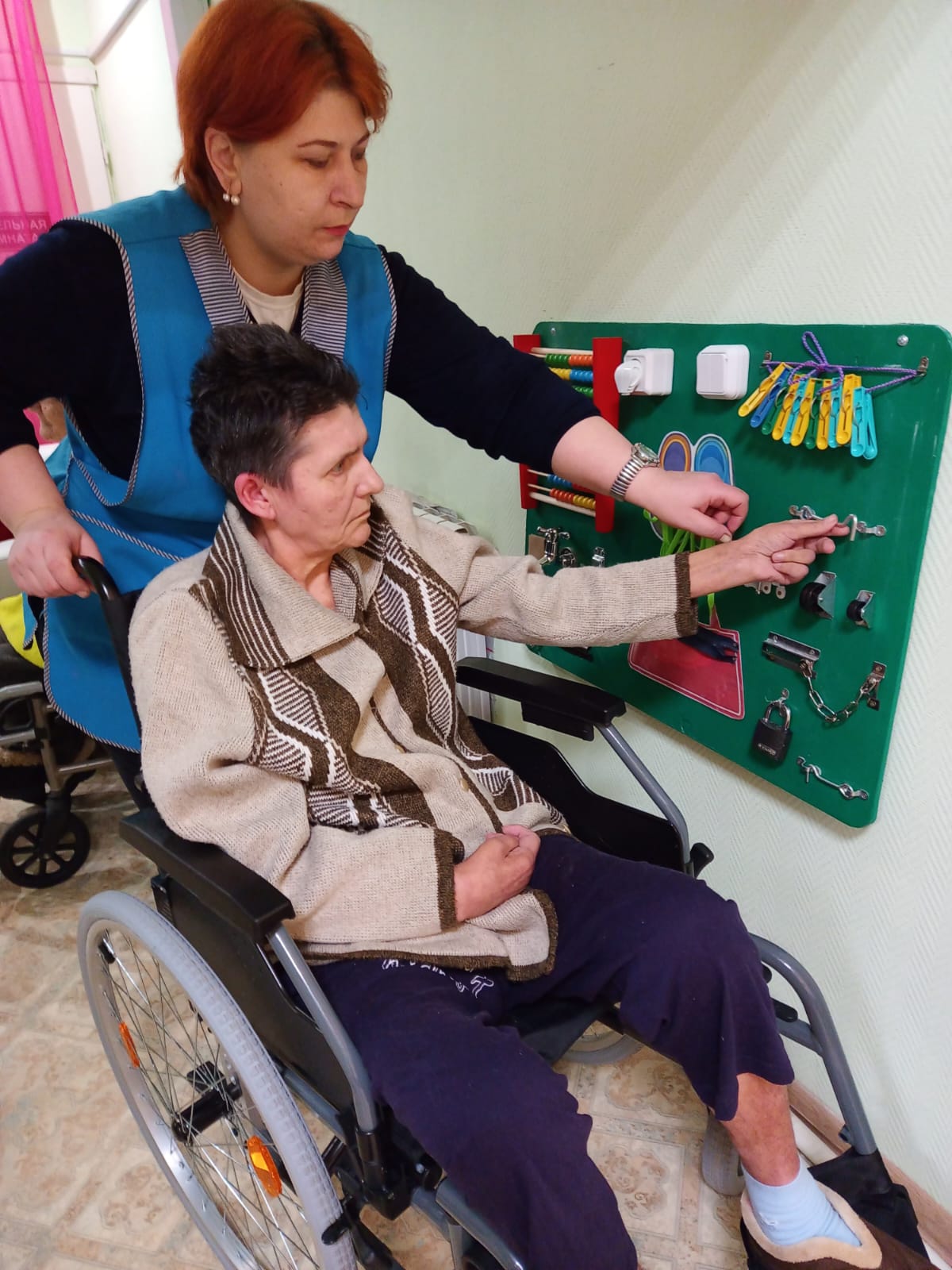 Воплощая в жизнь первую заповедь Елизаветы Глинки «Помогать всем, кто в этом нуждается своими руками» член клуба «ДоброSTAR» Владимир Александрович Калашников своими руками сделал бизиборд или, иначе говоря, умный стенд (панель для восстановления утраченных навыков) и попросил сотрудников передать его жителям отделения милосердия с. Сарыево.