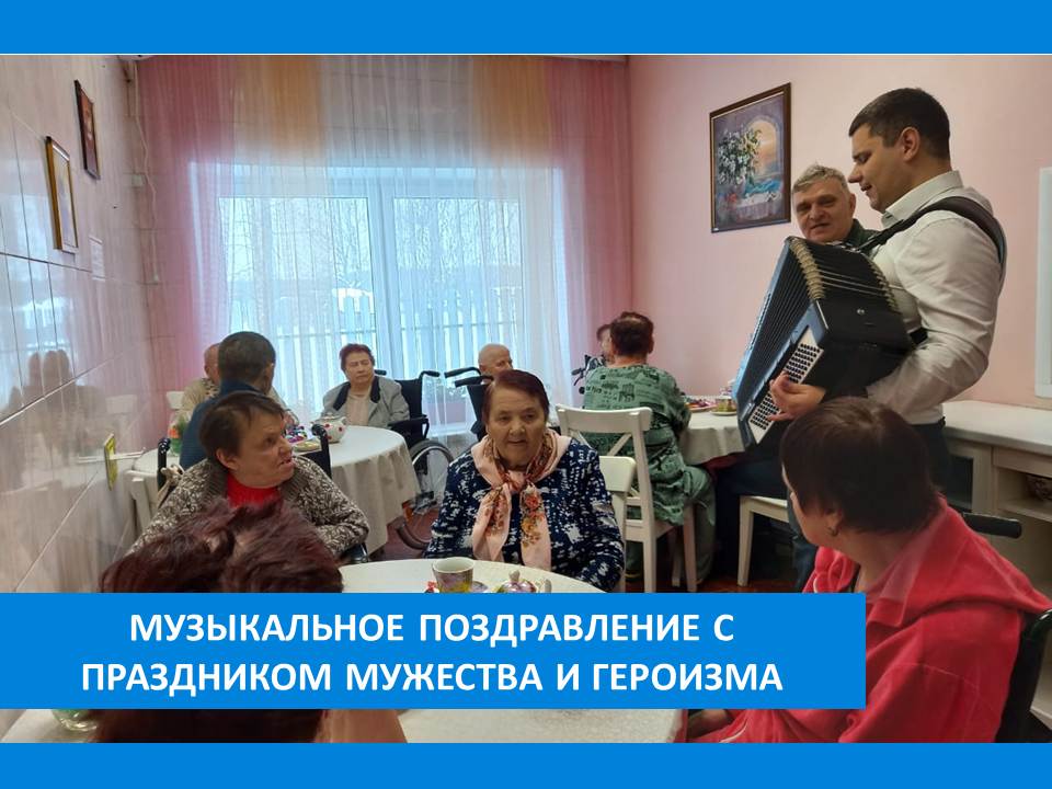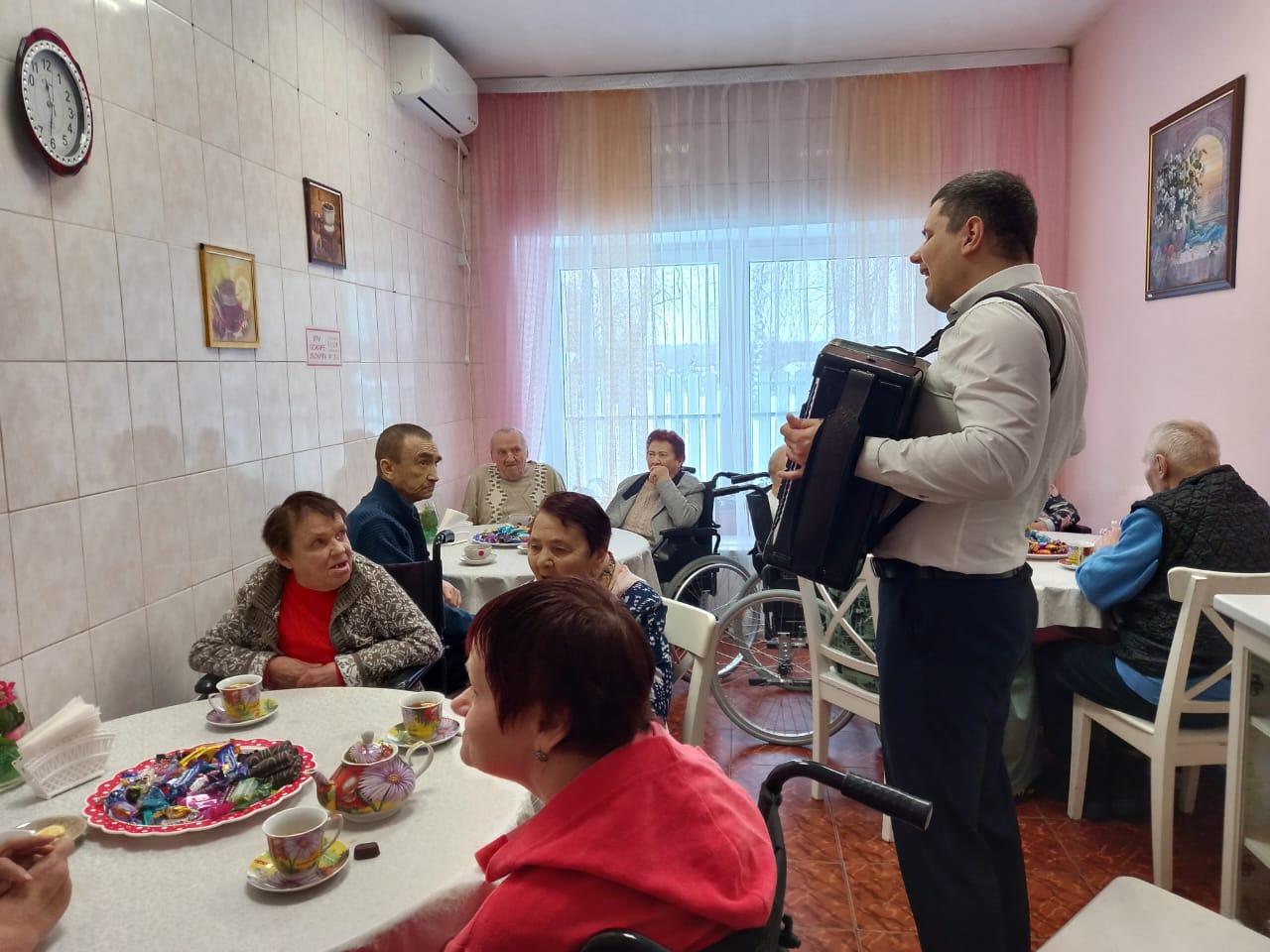 В преддверии Дня защитника Отечества  в  отделение  интенсивного ухода  Вязниковского Пансионата (с. Сарыево)  приехали Артём Ермолаев  и Евгений Ковалёв  из клуба  молодых инвалидов «Чайка» с музыкально-поэтической  программой « Для дорогих мужчин». Довольные зрители долго не отпускали дорогих гостей, благодарили его и желали творческих успехов. Выступление напоминало  дружескую встречу  старых, добрых друзей.