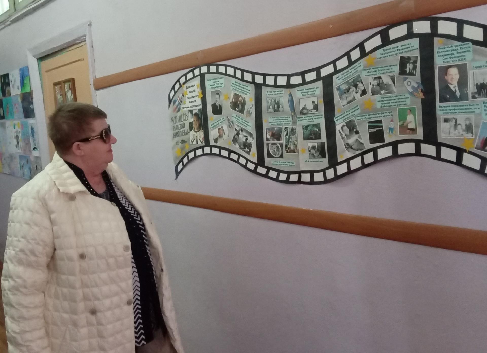 Проходя по коридорам школы, экскурсанты рассматривали экспозиции, которые говорили об истории города, школы и космической жизни В. Н. Кубасова. Войдя в кабинет, где расположена музейная экспозиция, все отметили уникальную атмосферу, создающую экспонатами прошлого столетия – это газеты, фотографии, книги, значки, одежда и многое другое. Больший интерес у посетителей вызвали – школьная парта, за которой сидел ученик Валера Кубасов, космическое питание в упаковках, теннисные принадлежности. А ещё, был представлен один из макетов бюста лётчика-космонавта, когда-то разрабатываемый для памятника, но так и не был утверждён самим дважды Героем СССР. А тот, который устроил Валерия Николаевича, был увековечен около администрации района. И, конечно, экскурсия была бы неполноценной без посещения бюста-памятника В.Н. Кубасову.