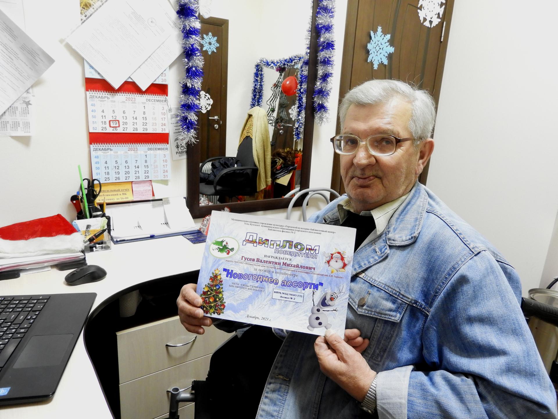 Житель Вязниковского Пансионата Валентин Михайлович Гусев принял участие в онлайн-игре «Новогоднее ассорти». Пройдя несложные задания, получил диплом победителя! И это так приятно!