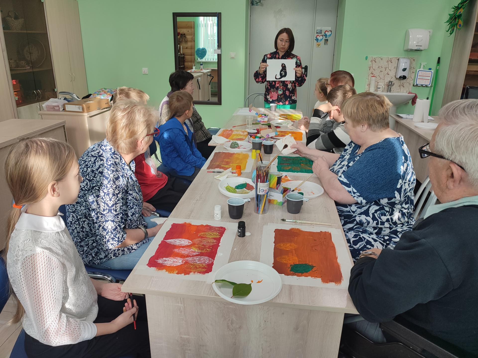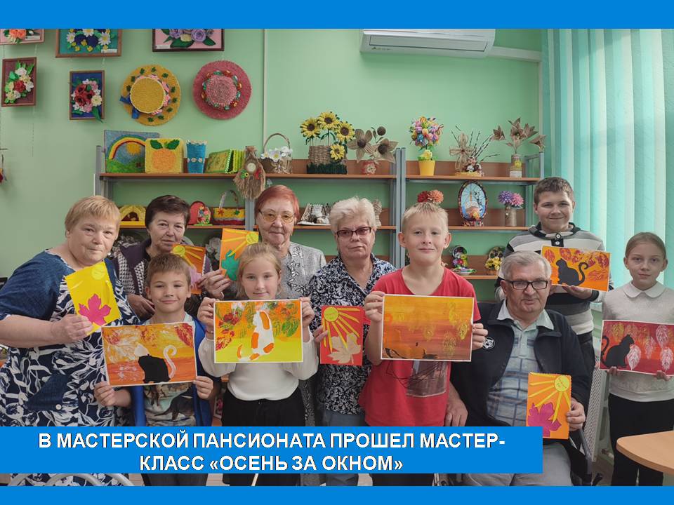 26 сентября жителей Пансионата пришли поздравить с наступающим праздником Днём пожилых людей подопечные отделения профилактики безнадзорности и правонарушений несовершеннолетних Вязниковского Комплексного центра. Дети прочитали тёплые стихотворения и вручили бабушкам и дедушкам самодельные открытки. А в знак благодарности участники творческой мастерской Пансионата подготовили и провели для детей мастер-класс по интуитивному рисованию с использованием трафаретов-котиков. Рисуя в тандеме, гости и хозяева, общались и делились своим опытом. Дети с восторгом покидали мастерскую, а старшему поколению осталась теплота и внимание от хорошей доброй встречи.