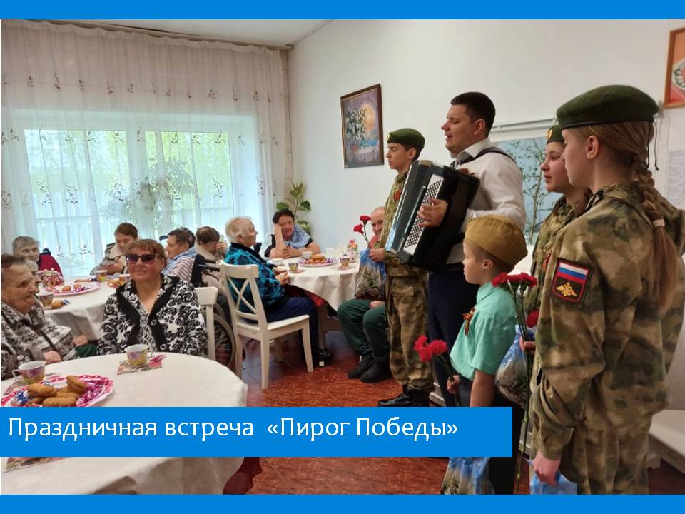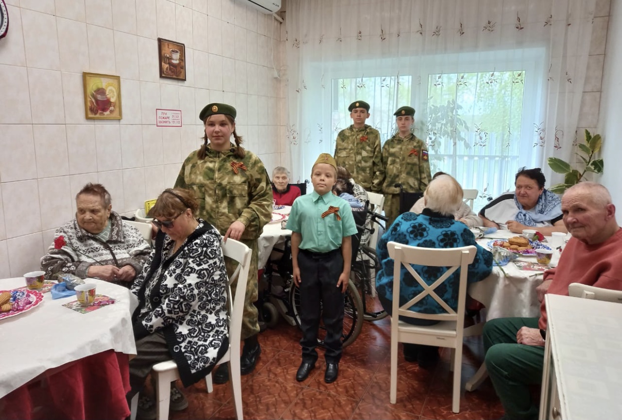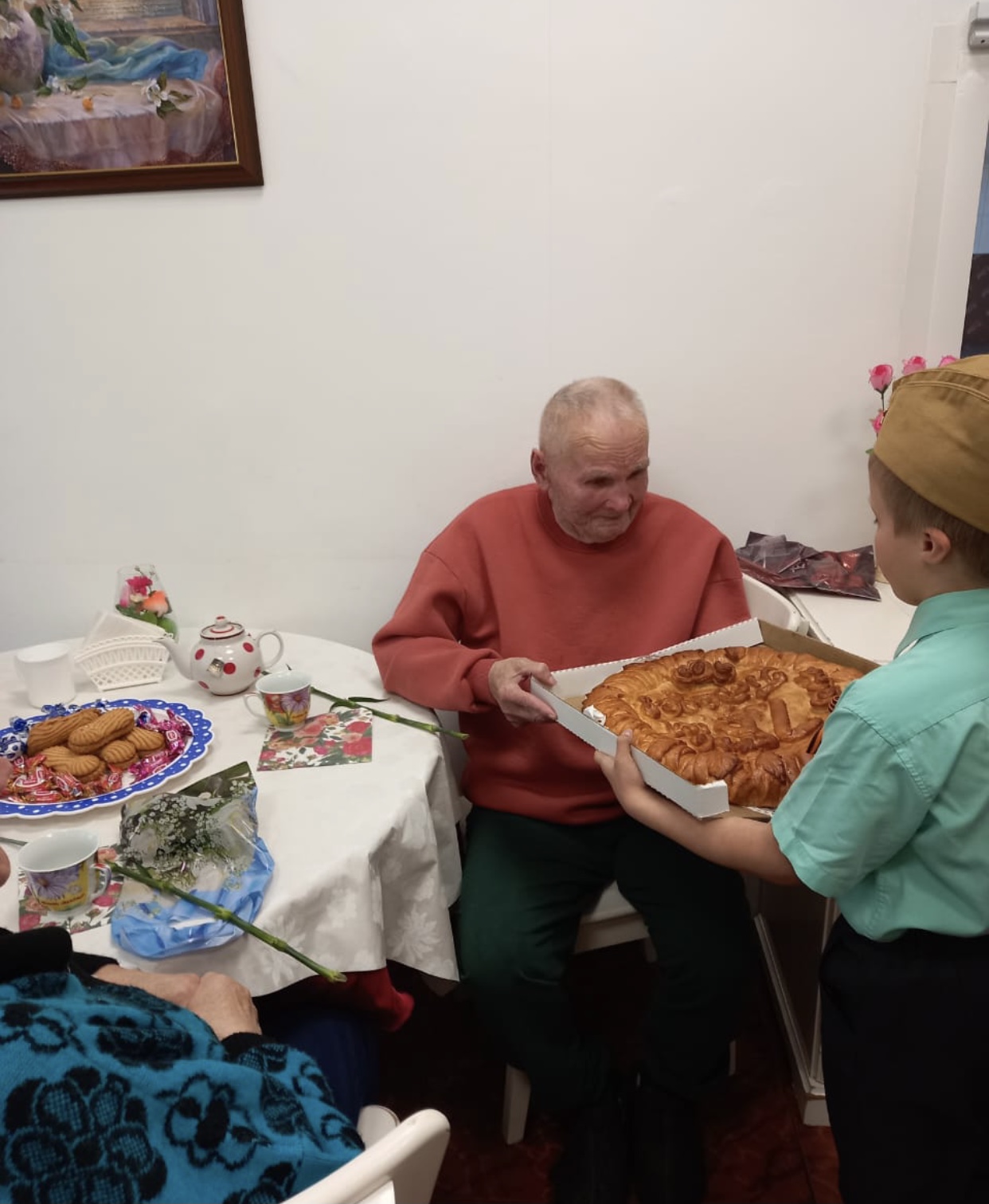 В преддверии праздника Дня Победы воспитанники подростково-молодежного клуба «Тимуровец» и активисты объединения людей с ограниченными возможностями здоровья «Чайка» г. Вязники посетили детей войны, проживающих в отделении интенсивного ухода с.Сарыево «Вязниковский дом интернат «Пансионат им. Е.П. Глинки», чтобы поздравить с праздником Великой Победы, вручить подарки и традиционный пирог Победы. Встреча прошла волнительно и трогательно.