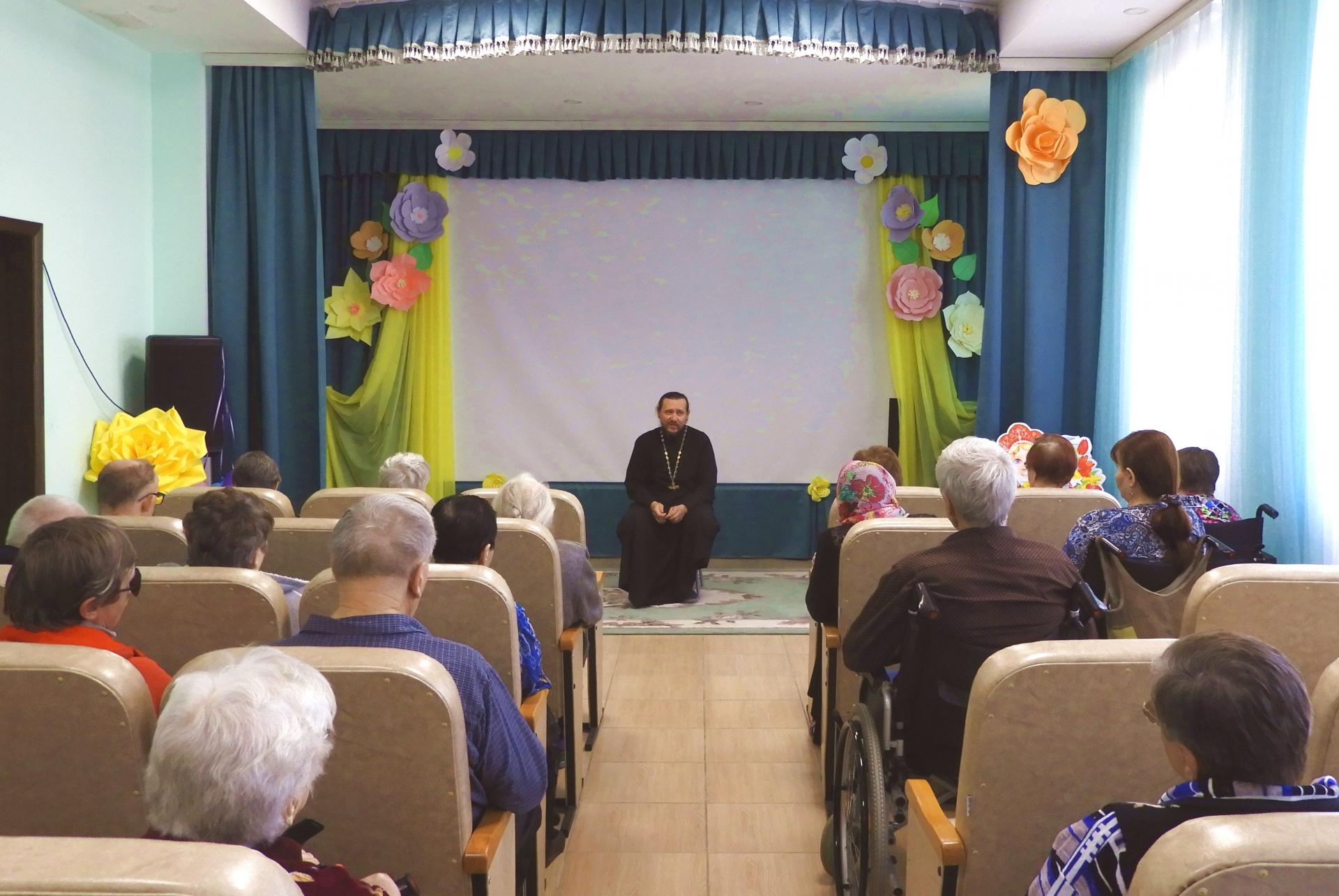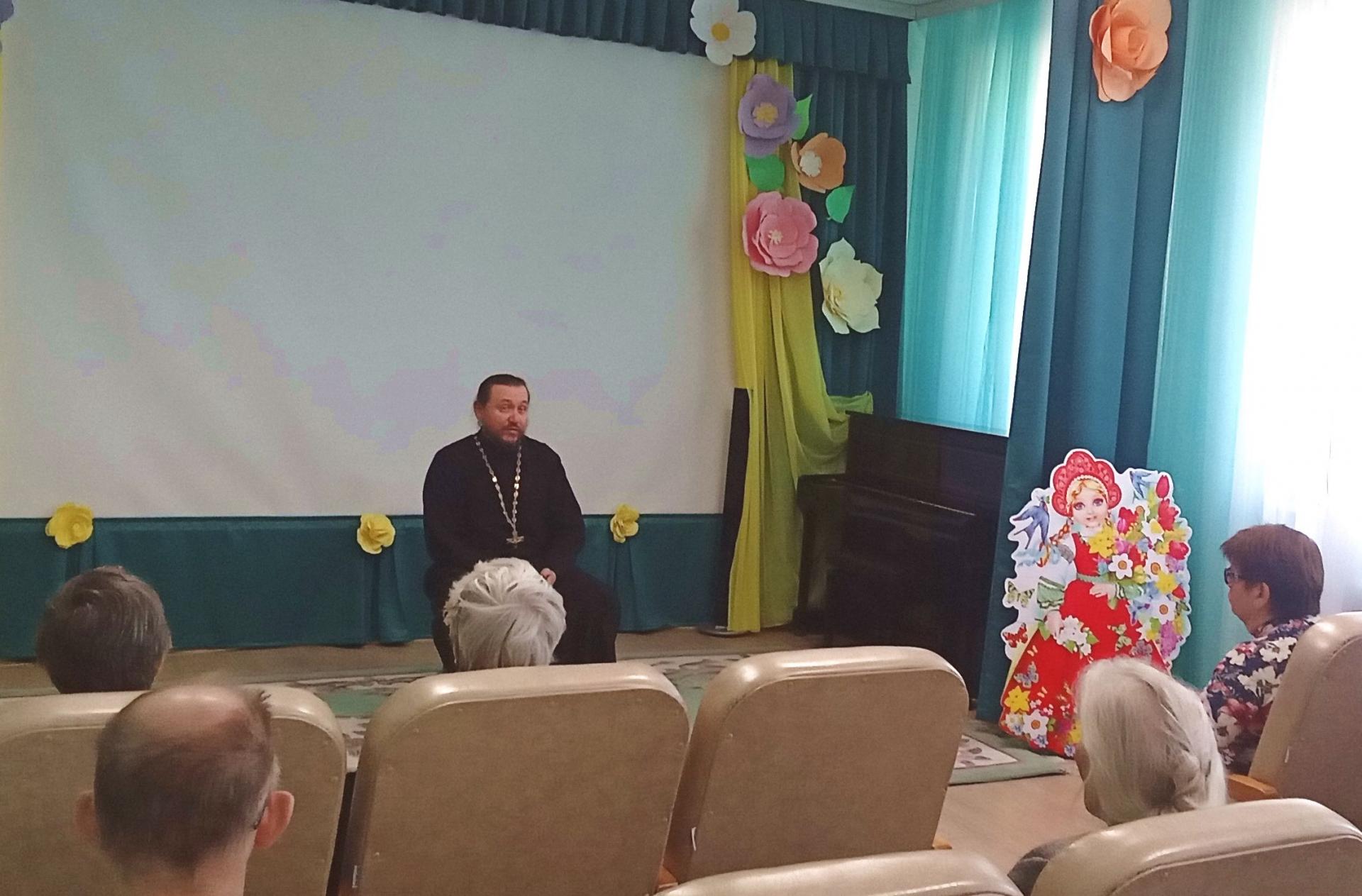 В среду, 20 апреля, у жителей Вязниковского Пансионата прошла беседа с иереем Свято-Покровского храма отцом Владиславом. Встреча была посвящена Великому посту и его значению для православных. Так же говорили о заповедях Божьих, которые являются своеобразным предписанием, помогающие людям стоять на страже своей совести.