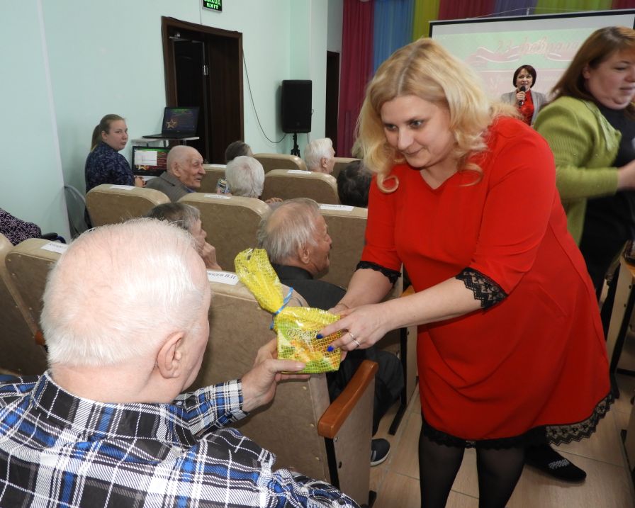 После торжественной церемонии вручения удостоверений с музыкальными подарками выступили Любовь Лаптева, дуэт «Откровение» и ансамбль «Девчата». Зрители в зале с удовольствием подпевали любимые песни «В землянке», «Уголок России», «Идёт солдат по городу», «Через две весны» и др. В завершении всем мужчинам преподнесли подарки, а закончилось мероприятие общей фотографией на память.