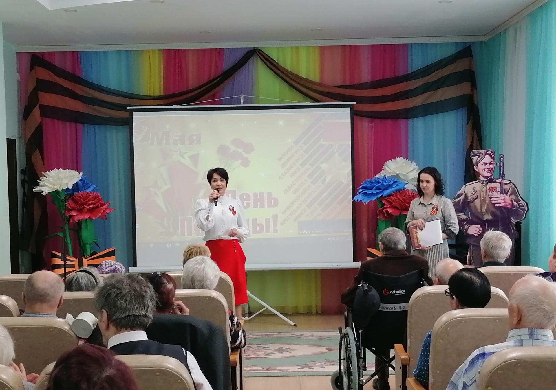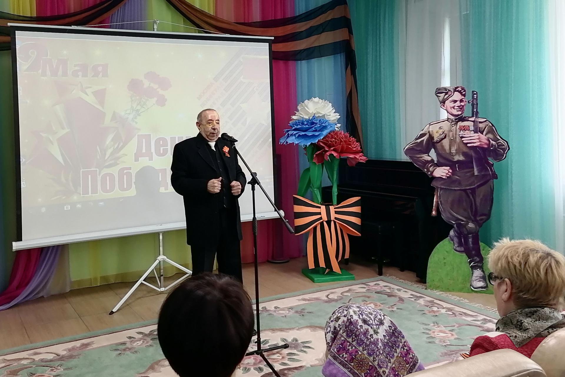 6 мая в Вязниковском Пансионате прошёл праздничный концерт, на котором присутствовали жители Пансионата – труженики тыла, дети войны. Торжественную часть концерта открыла директор Пансионата Е.А. Сергеева словами поздравления в адрес присутствующих ветеранов. От лица Главы Вязниковского района А.И. Максимова и Главы администрации И.В. Зинина, Екатерина Александровна пожелала здоровья, долгих лет жизни и мирного неба, а так же вручили подарки ветеранам. И традиционно, всем труженикам тыла торжественно были вручены письма с поздравлением от президента РФ В.В. Путина.