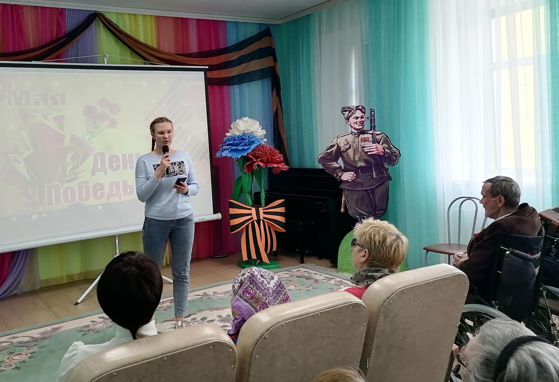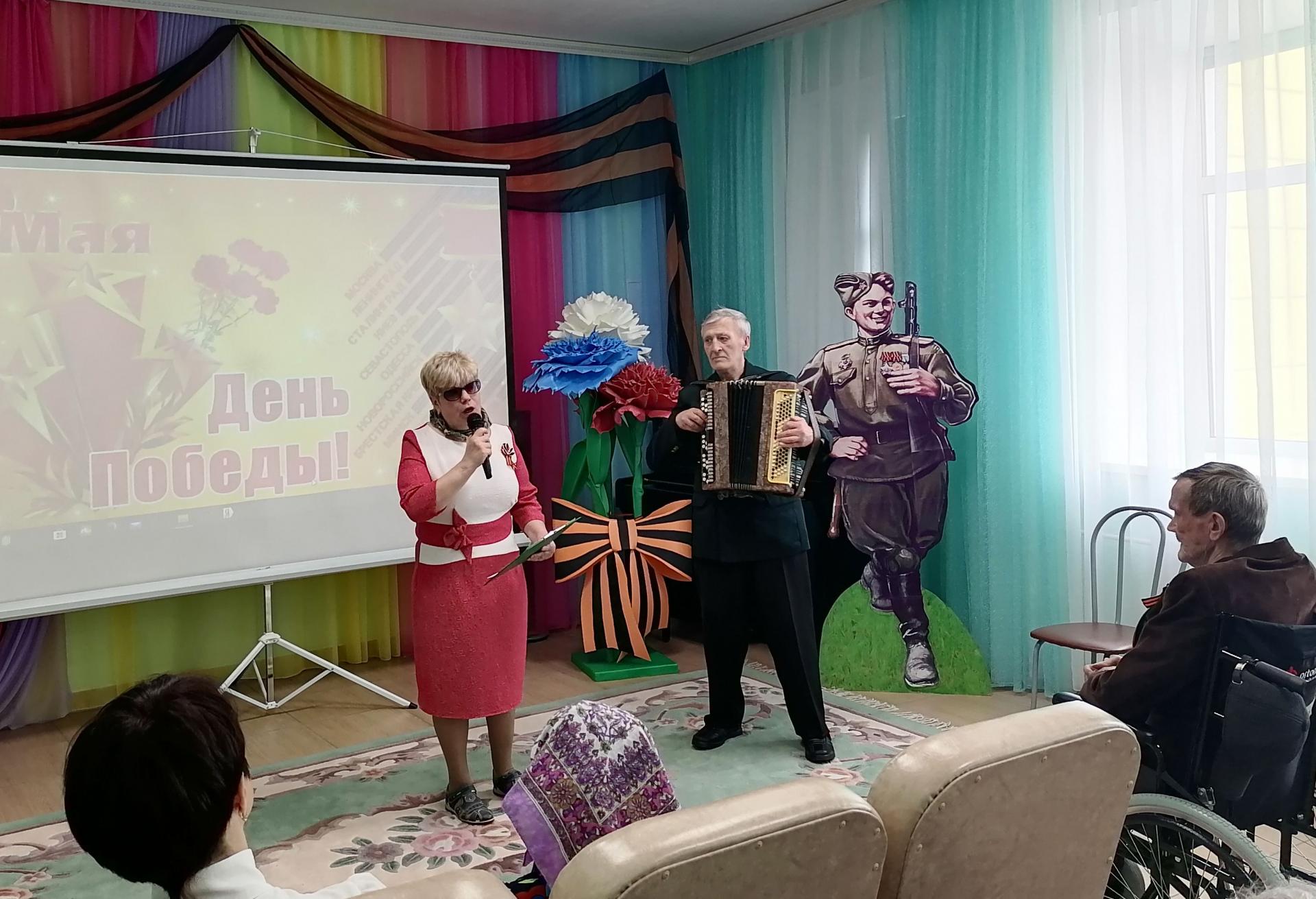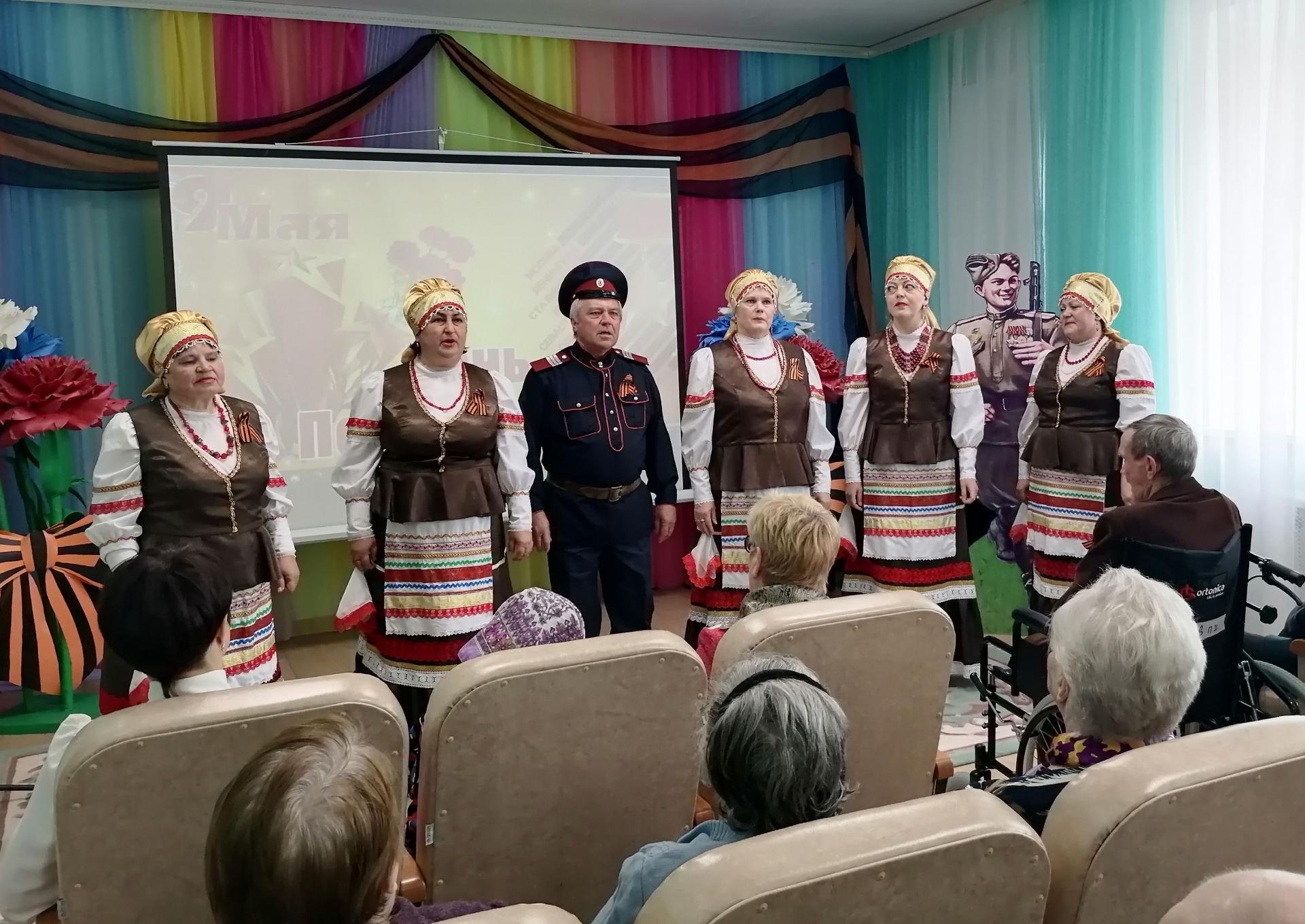 В этот особенный для всех праздник, своим творчеством радовали и жители Пансионата (серебряные волонтёры), и приглашённые гости. Подрастающее поколение представила учащаяся СОШ № 2 Мария Маркелова, прочитав стихи о войне собственного сочинения. Так же своё творчество дарили артисты Дома народного творчества – народный ансамбль «Талица», в их исполнении прозвучали песни – «Огонёк», «Синий платочек», «Не будите журавли вдов России», «Скакал казак» и др.