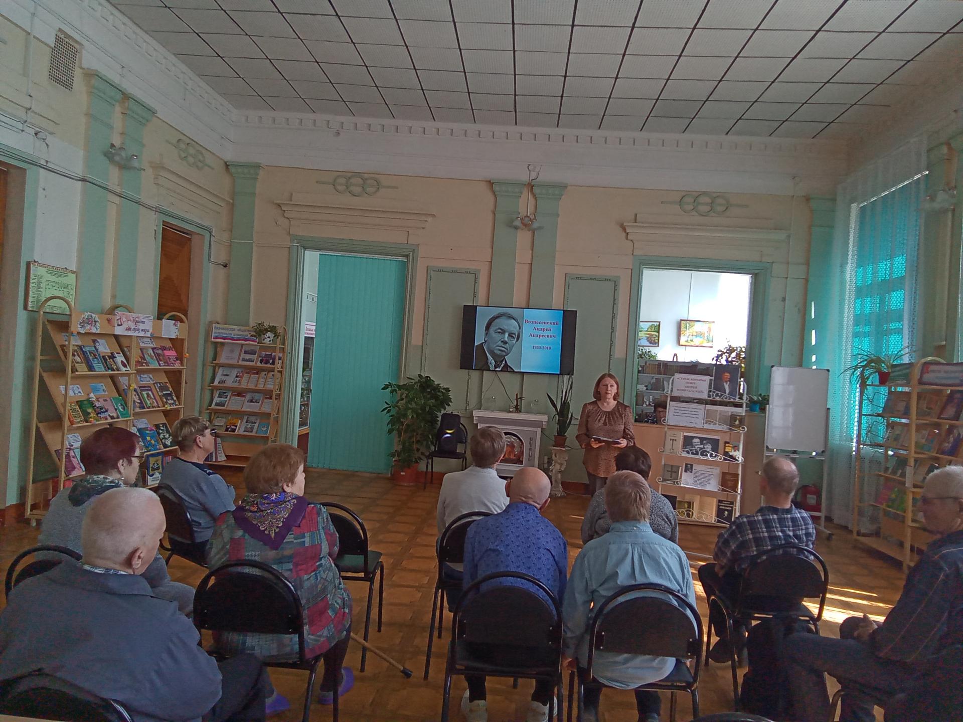 В преддверии юбилея поэта Андрея Вознесенского, жители пансионата посетили музыкально-поэтический вечер «Стихи не пишутся – случаются», организованный библиотечным центром «Интеллект». Ведущая мероприятия, Наталья Протасьева, рассказала о детстве и юности поэта, о первых пробах пера, о первых сборниках поэзии. Прозвучали популярные песни: «Не исчезай», «Вальс при свечах», «Первый лёд», «Верни мне музыку», «Барабан», «Миллион алых роз» Мероприятие получилось интересным, познавательным и эмоциональным.