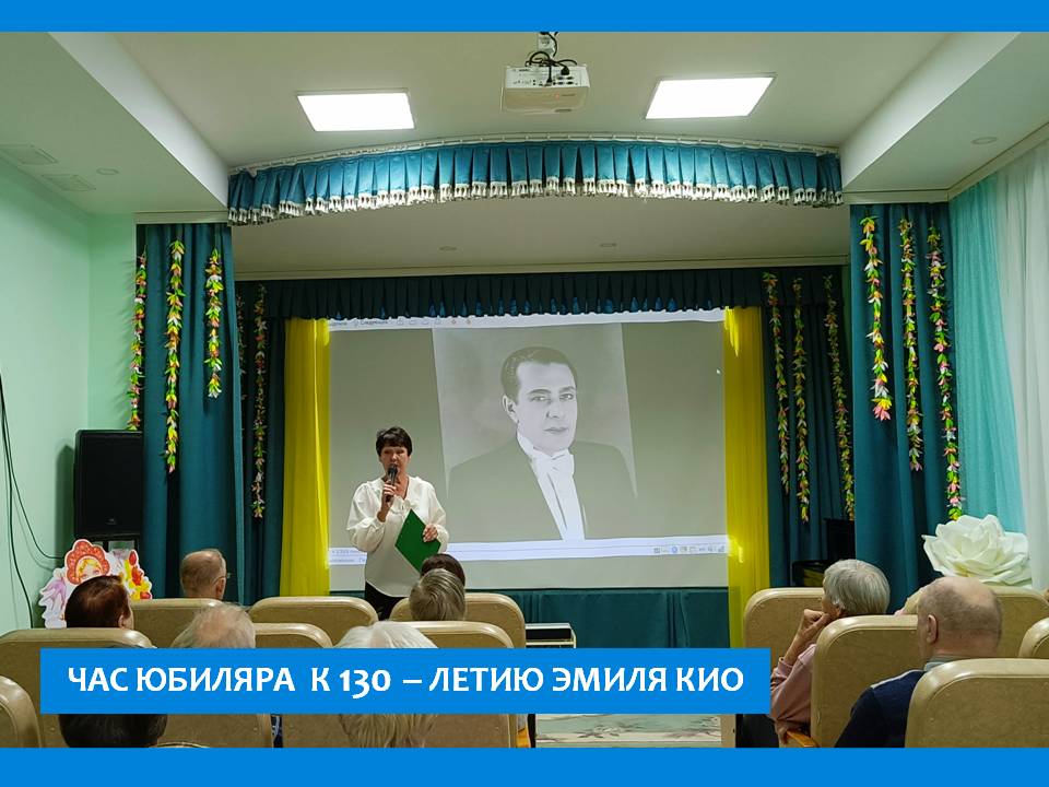 6 апреля для жителей пансионата   прошел вечер, посвященный  знаменитому иллюзионисту  Эмилю Теодоровичу  Кио, которому исполняется 130 лет со дня рождения. Эмиль  Теодорович Кио — советский  артист цирка, иллюзионист, Народный артист РСФСР (1958), создатель иллюзионных представлений. Грандиозные иллюзионные трюки, феерическое зрелище, актерское обаяние, гарантированные аншлаги — все это вместе взятое и есть феномен Кио.