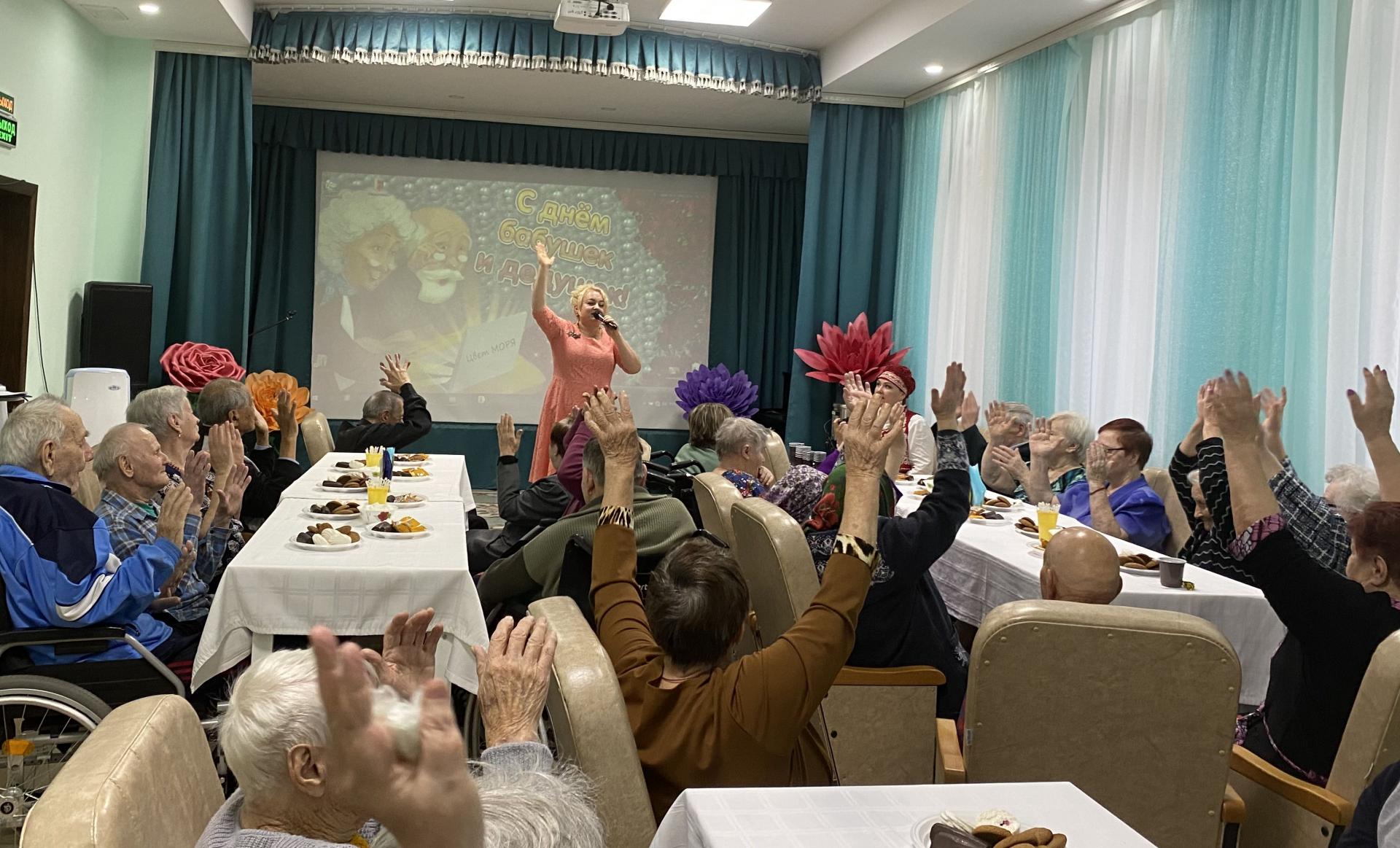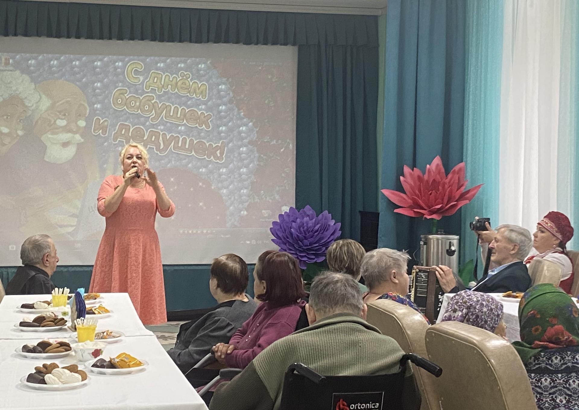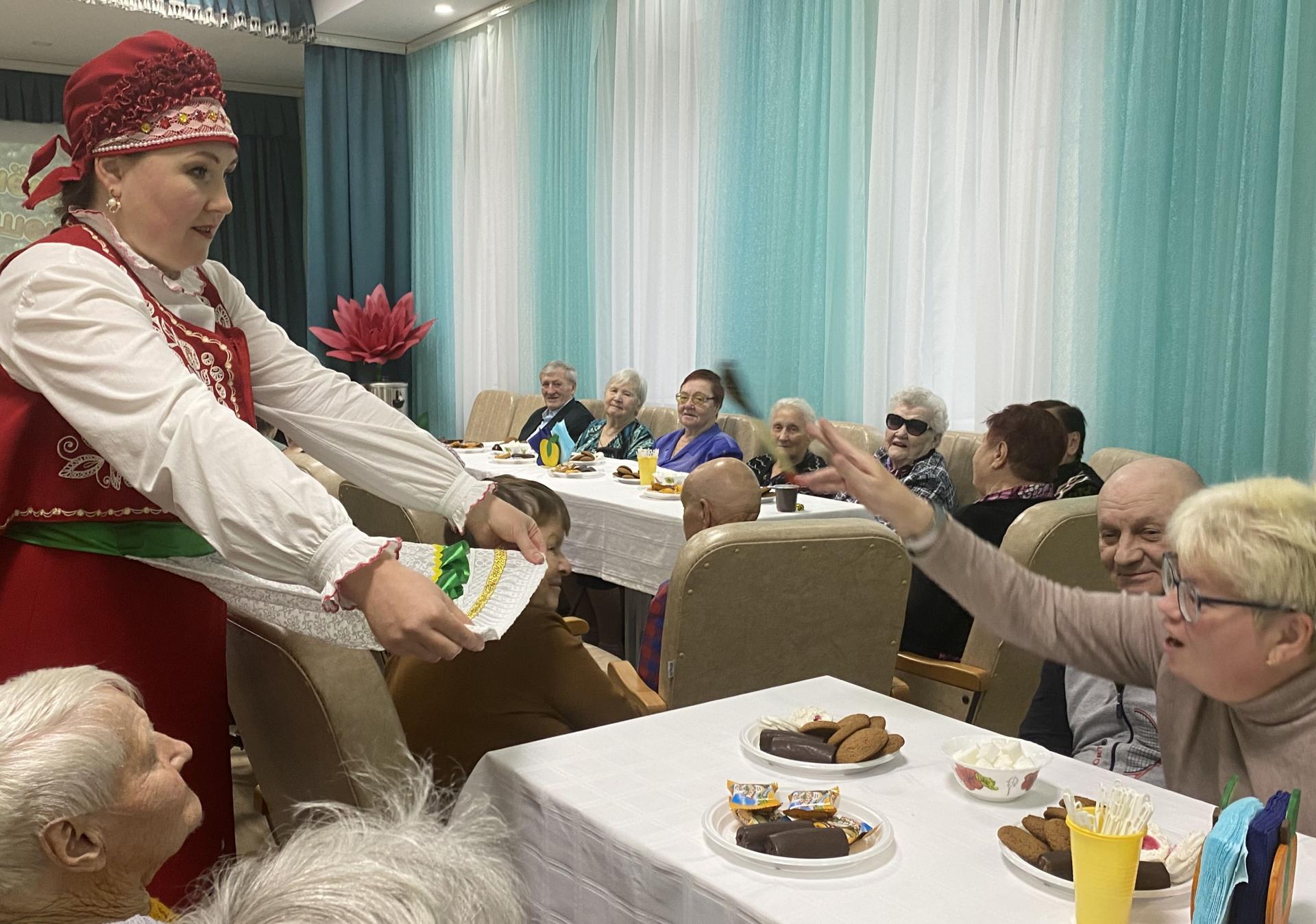 28 октября, в День бабушек и дедушек, в Вязниковском Пансионате прошло традиционное мероприятие – вечер отдыха «От души и для души!» Это название очень совпадает с тем, что происходило на этом вечере. Праздничную программу провели совместно с работниками Дома народного творчества. В начале мероприятия поздравительный видеоролик от детей поднял всем настроение, а дальше всё происходило как по заказу. Артисты культуры радовали жителей своим общением, анимационными и игровыми моментами, весёлыми викторинами, пели замечательные песни, которые все подхватывали и подпевали. Но и жители, а точнее, серебряные волонтёры, восхитили гостей своим творчеством. Прекрасная атмосфера царила на протяжении всего праздника, а это был на самом деле праздник! По радостным лицам, по участию в общем действии было видно, насколько хорошо в данный момент всем присутствующим. Традиционно этот вечер отдыха проходит за чайным столом. После развлекательной программы, под хорошие песни, все угощались чаем со сладостями.