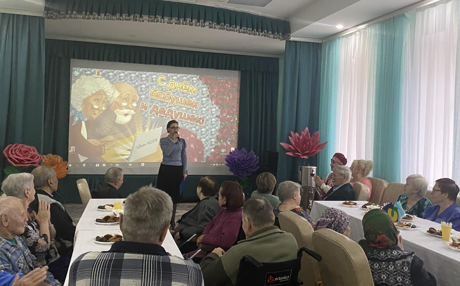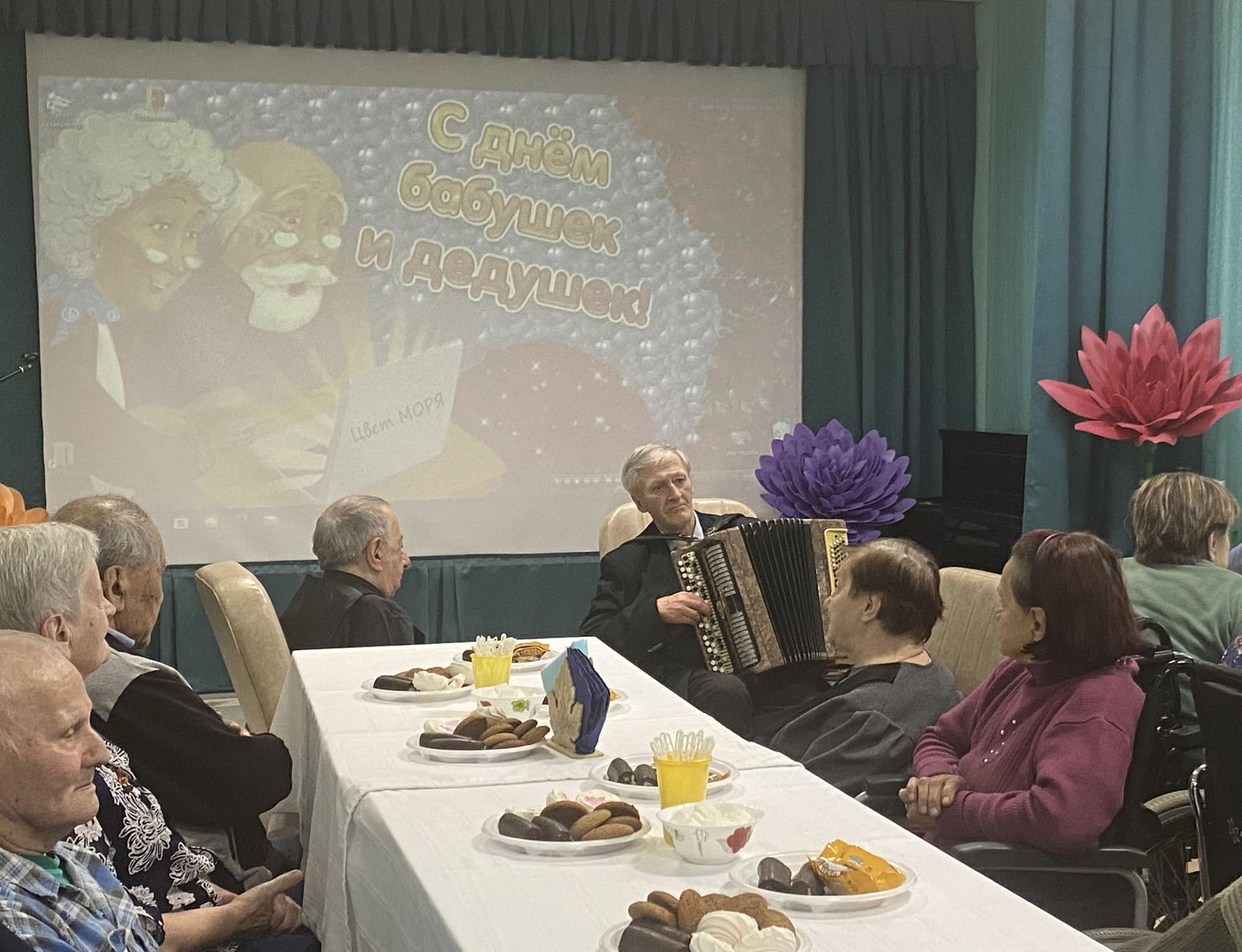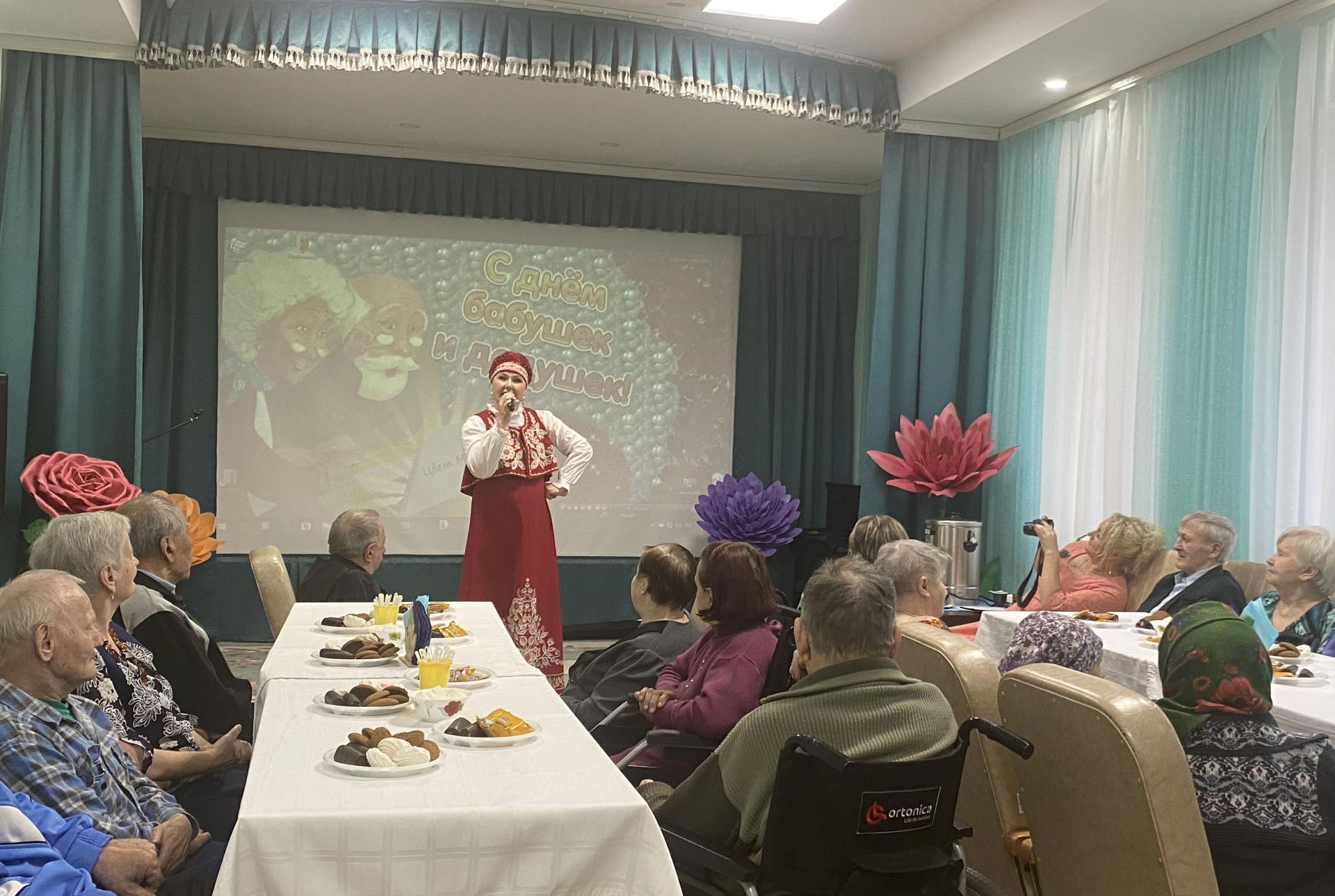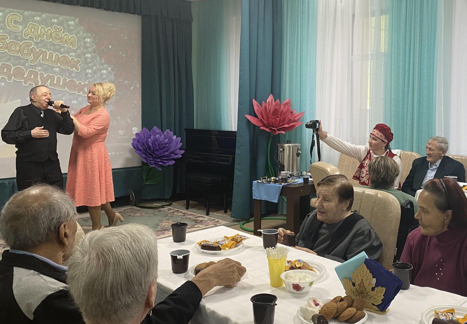 28 октября, в День бабушек и дедушек, в Вязниковском Пансионате прошло традиционное мероприятие – вечер отдыха «От души и для души!» Это название очень совпадает с тем, что происходило на этом вечере. Праздничную программу провели совместно с работниками Дома народного творчества. В начале мероприятия поздравительный видеоролик от детей поднял всем настроение, а дальше всё происходило как по заказу. Артисты культуры радовали жителей своим общением, анимационными и игровыми моментами, весёлыми викторинами, пели замечательные песни, которые все подхватывали и подпевали. Но и жители, а точнее, серебряные волонтёры, восхитили гостей своим творчеством. Прекрасная атмосфера царила на протяжении всего праздника, а это был на самом деле праздник! По радостным лицам, по участию в общем действии было видно, насколько хорошо в данный момент всем присутствующим. Традиционно этот вечер отдыха проходит за чайным столом. После развлекательной программы, под хорошие песни, все угощались чаем со сладостями.