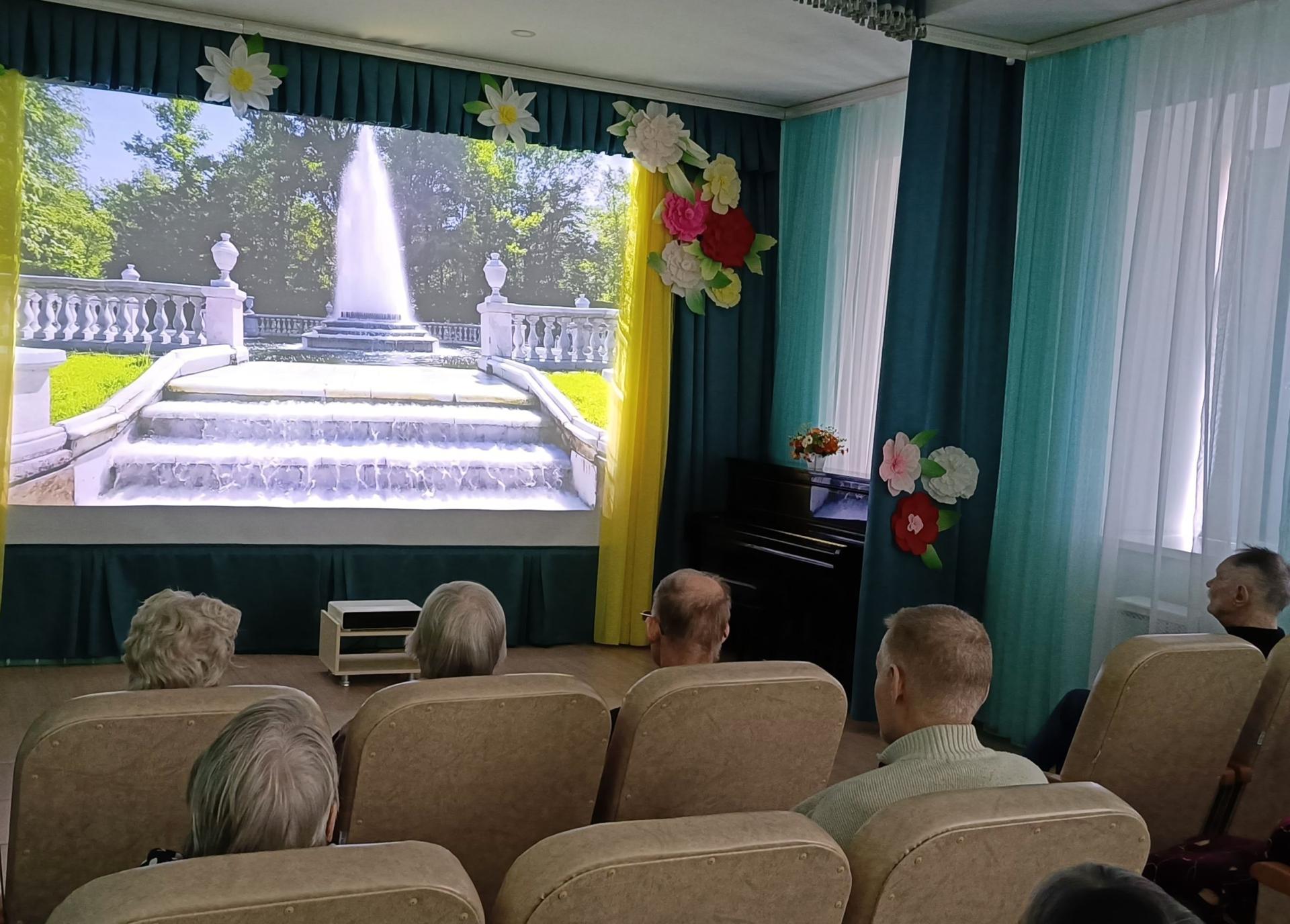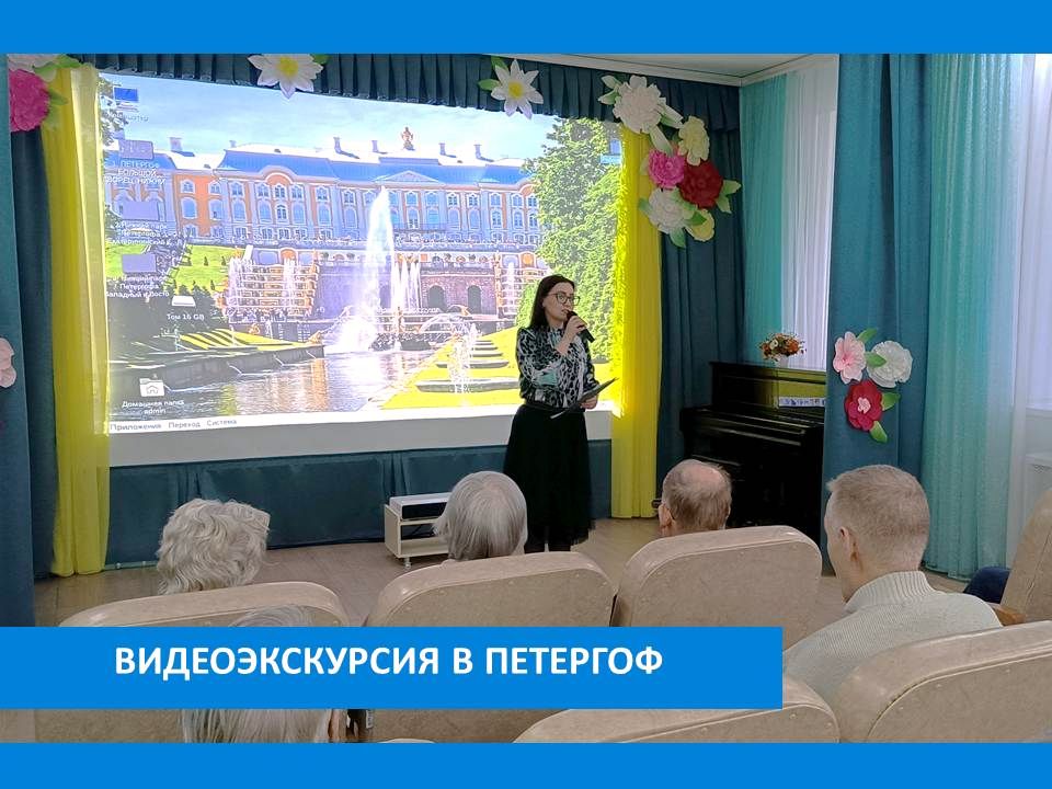 Жители Вязниковского Пансионата совершили виртуальную поездку. Вниманию зрителей была представлена видеоэкскурсия по резиденции Петра I. Это была прогула по нижнему парку прекрасного комплекса. Множество разнообразных фонтанов, статуй, прогулочных тропинок предстали перед зрителями. Побывали в гроте, посетили Екатерининский корпус, павильон «Эрмитаж», а также Западный и Восточный вольеры.