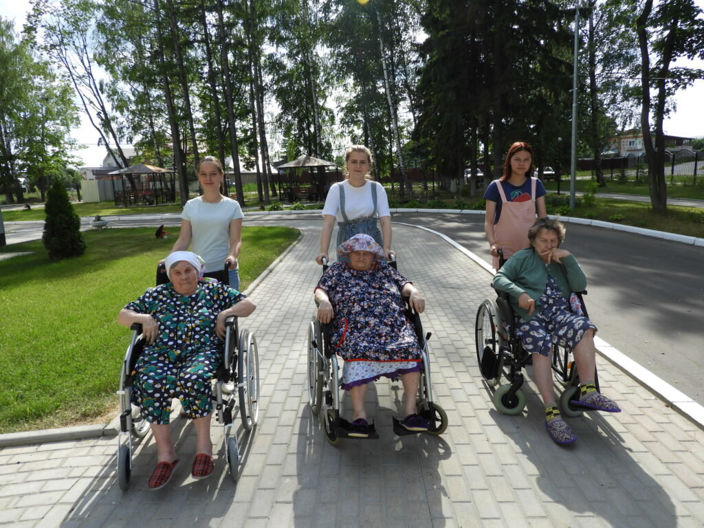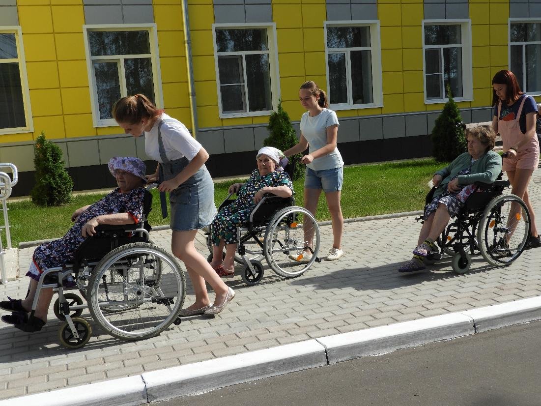 20 июня 2019 года в гости к проживающим Вязниковского Пансионата им. Е.П. Глинки вновь пришли наши добрые друзья – волонтеры подростково-молодежного клуба «Тимуровец». Ребята прогулялись на свежем воздухе с маломобильными проживающими-колясочниками, вместе радуясь хорошей погоде и солнечному дню. От прогулки остались положительные эмоции и хорошее настроение. До новых встреч!