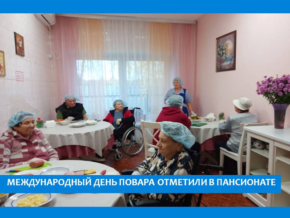 В отделении интенсивного ухода с. Сарыево Вязниковского дома-интерната «Пансионат им. Е.П. Глинки» праздновали Международный день повара! Сотрудник отделения провела мастер-класс по сервировке стола. Жители решили вспомнить и приготовить блюдо самостоятельно, а так же творчески подойти к делу. Выбран был популярный российский салат «Оливье», так как он прост в приготовлении, а продукты для него всегда доступны. Мероприятие получилось очень увлекательным, вкусным и полезным!