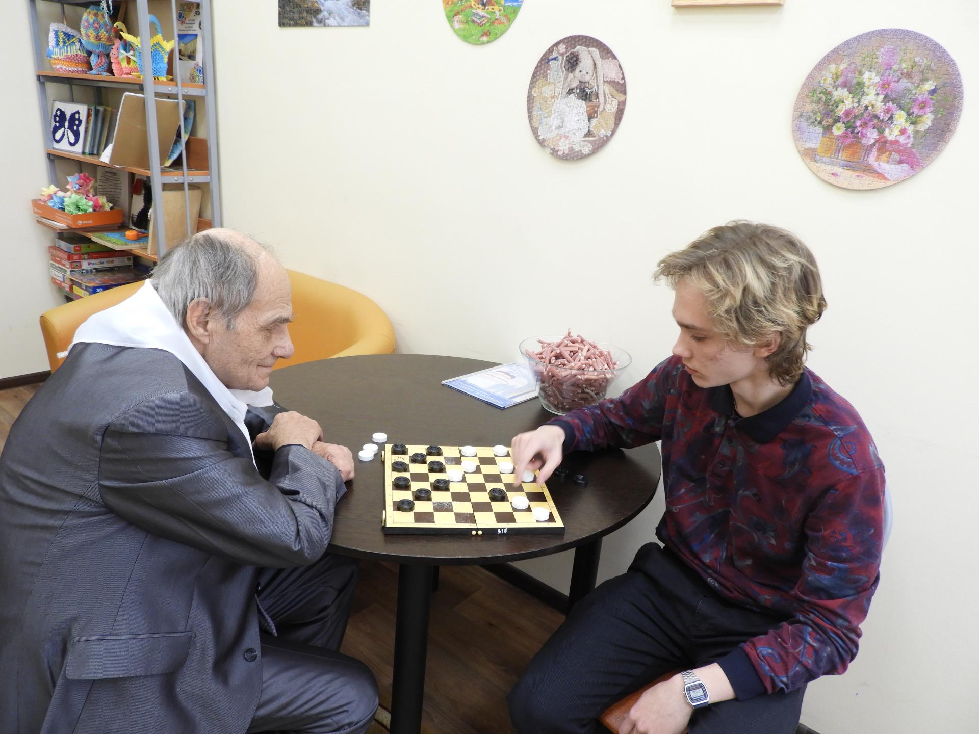 «Серебряные волонтёры» Пансионата, члены клуба ДоброSTAR, Игорь Владимирович Савельев, и Наталья Идрисова встретились с волонтёрами Вязниковского технико-экономического колледжа, поделились опытом волонтёрской работы. Провели турнир по шашкам. Игра в целом получилась дружеской, несмотря на дух соперничества.