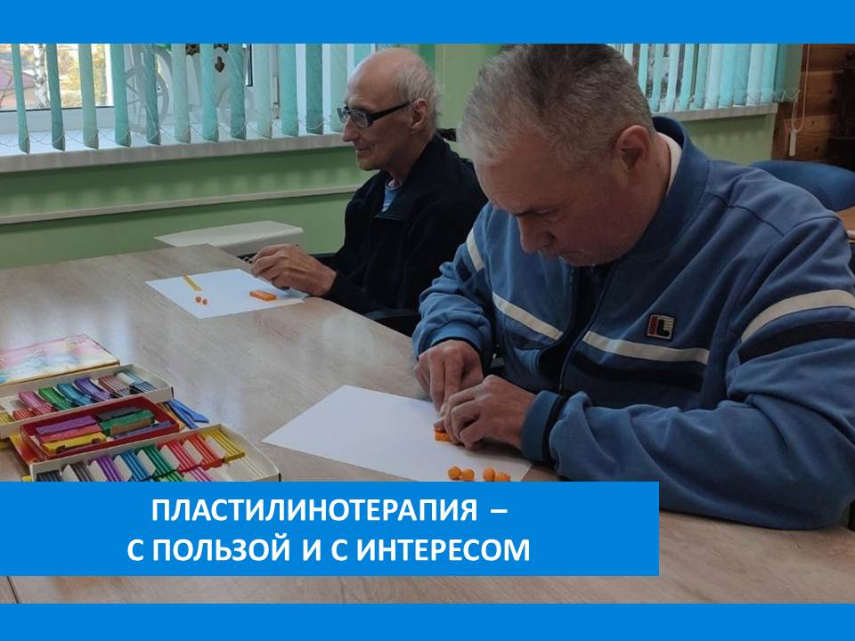 В творческой мастерской Вязниковского Пансионата специалистом по реабилитации для маломобильных жителей было проведено занятие по пластилинотерапии.
