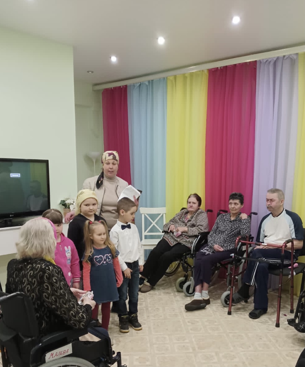 У прихода Смоленской иконы Божией матери с. Сарыево и отделения интенсивного ухода Вязниковского пансионата им.Е.П.Глинки давно сложились добрые отношения. Воспитанники воскресной школы прихода подарили Пасхальный концерт пожилым людям и инвалидам, а настоятель храма иерей Георгий поздравил жителей со Светлой седмицей.