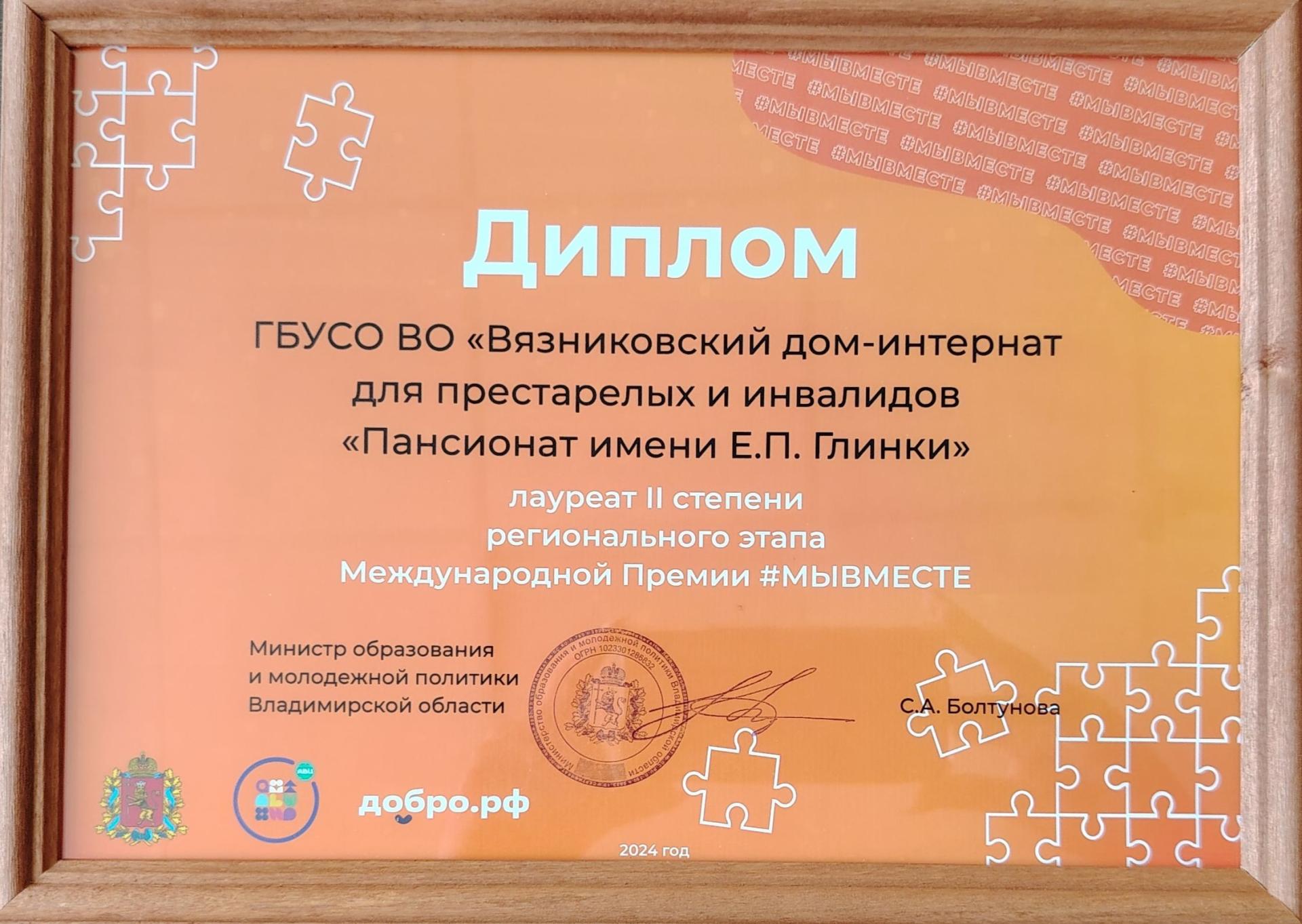 Социальный проект «ВРЕМЯ ЖИТЬ» отмечен дипломом Лауреата II степени регионального этапа МЕЖДУНАРОДНОЙ ПРЕМИИ #МЫВМЕСТЕ 2024 в номинации «Страна возможностей».