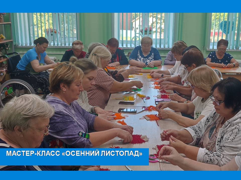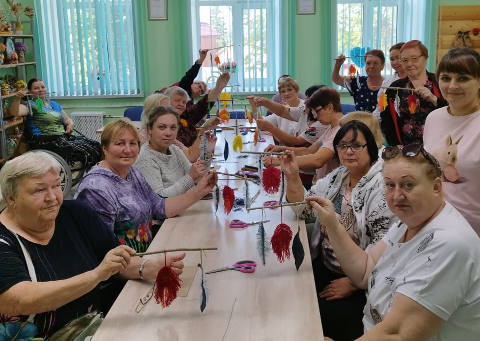 18 сентября жители Пансионата встретились с участниками Мастерской умельца (руководитель Щенникова Е.И.) Дома Народного Творчества. В программе творческой лаборатории, которая прошла в мастерской пансионата, хозяева и гости обменивались мастер-классами по созданию осенних листьев. Все научились изготавливать листья из ниток в технике макраме и листья из джинсовой ткани. Результатом работы стали индивидуальные осенние панно.