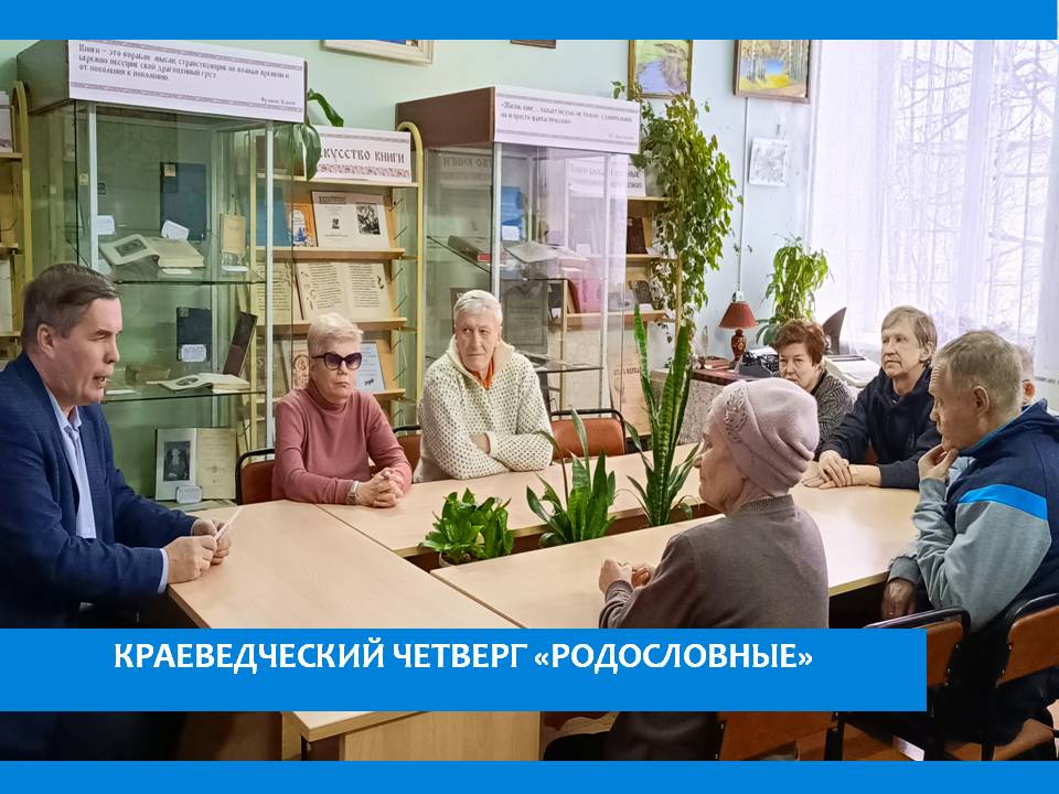 В библиотечном центре «Интеллект» в рамках проекта «Краеведческий четверг» жители пансионата вновь встретились с журналистом и краеведом Николаем Фроловым. Беседа в этот раз шла о родословных. Ведь, как правило, не каждый сможет вспомнить далеких родственников. А родословную можно составить, ведь это уникальная связь настоящего с прошлым, а заодно и ознакомиться с семейной историей нескольких поколений людей одного или нескольких родов. Правда, для этого необходимо запастись терпением.