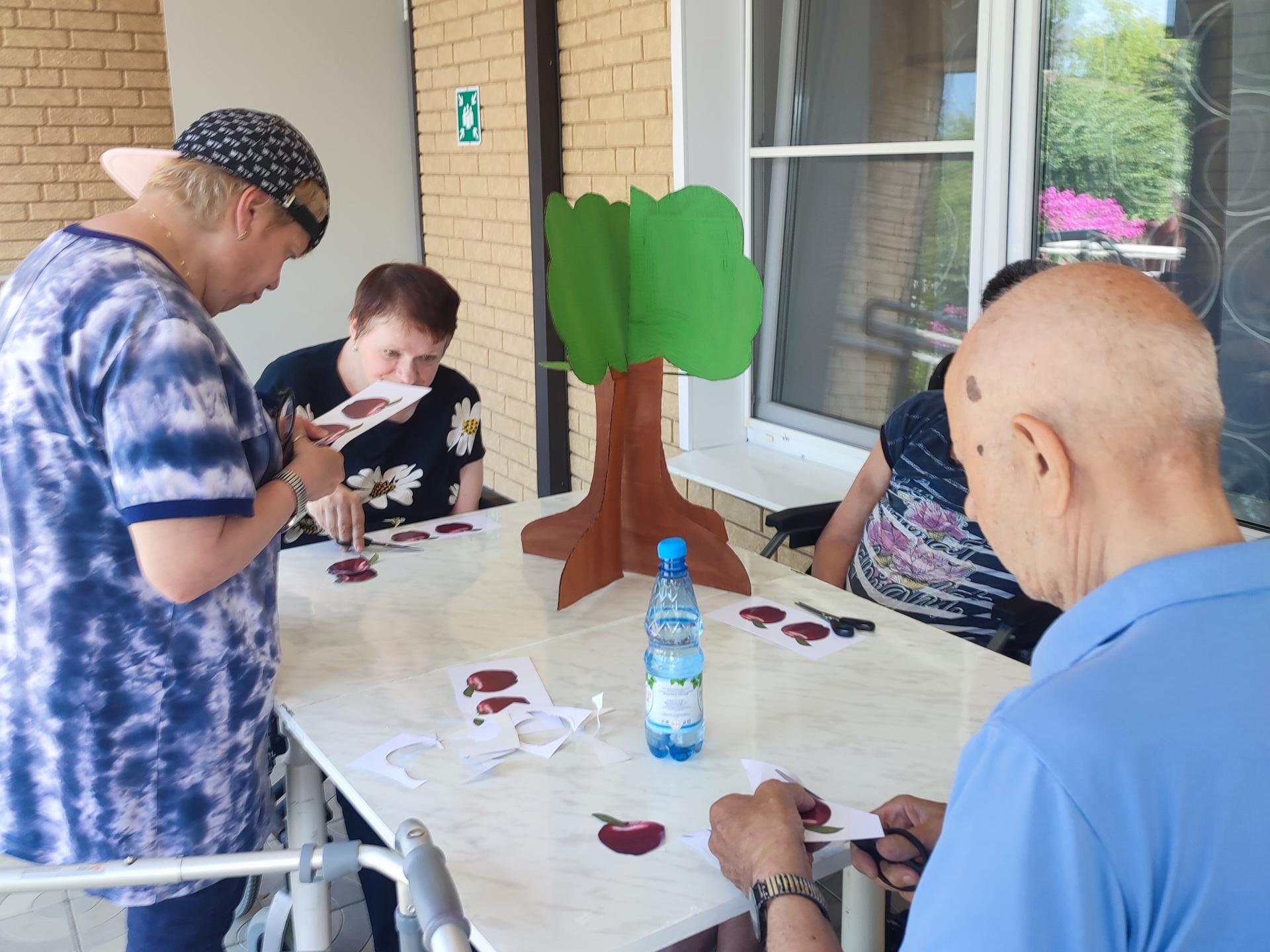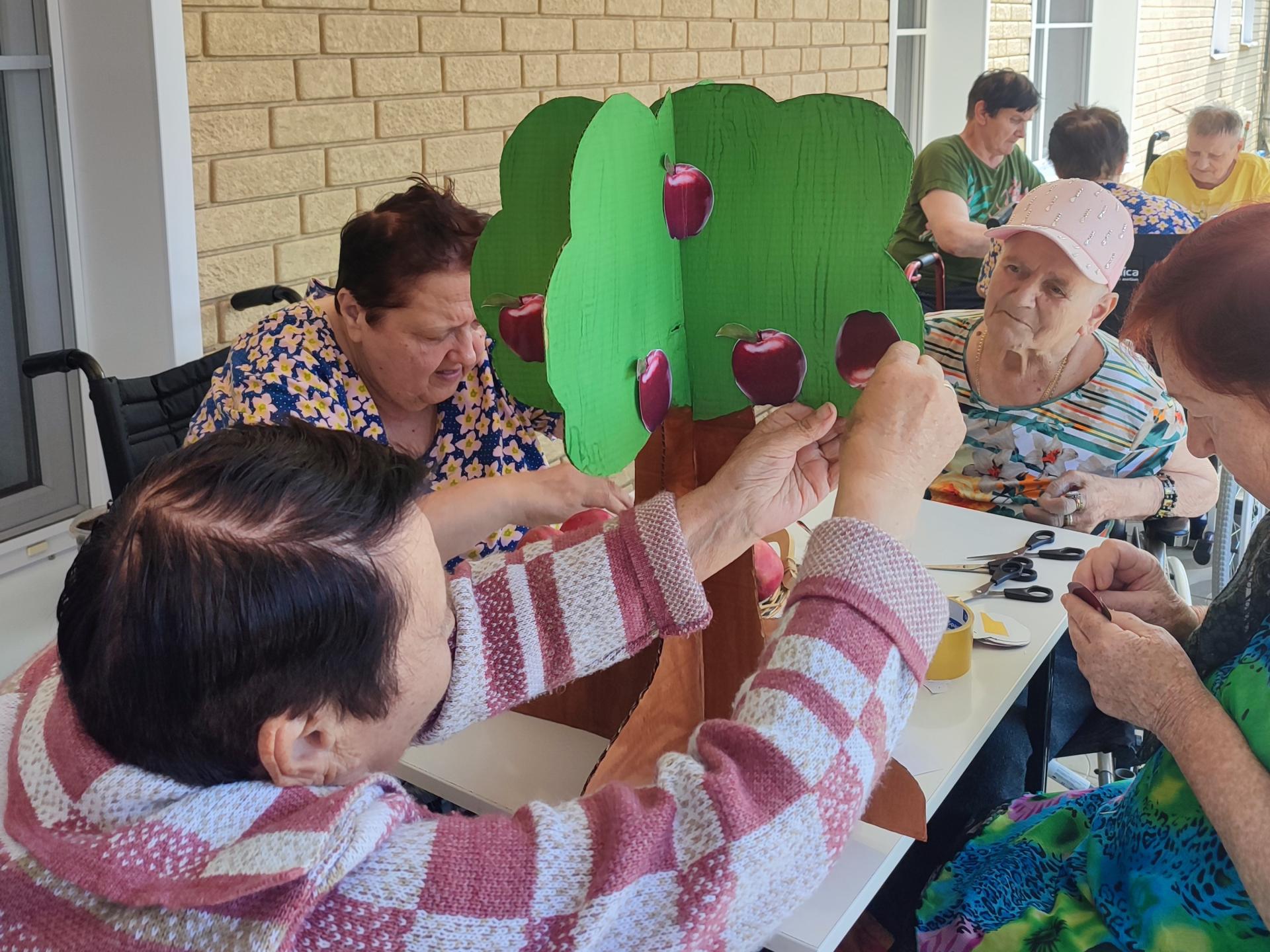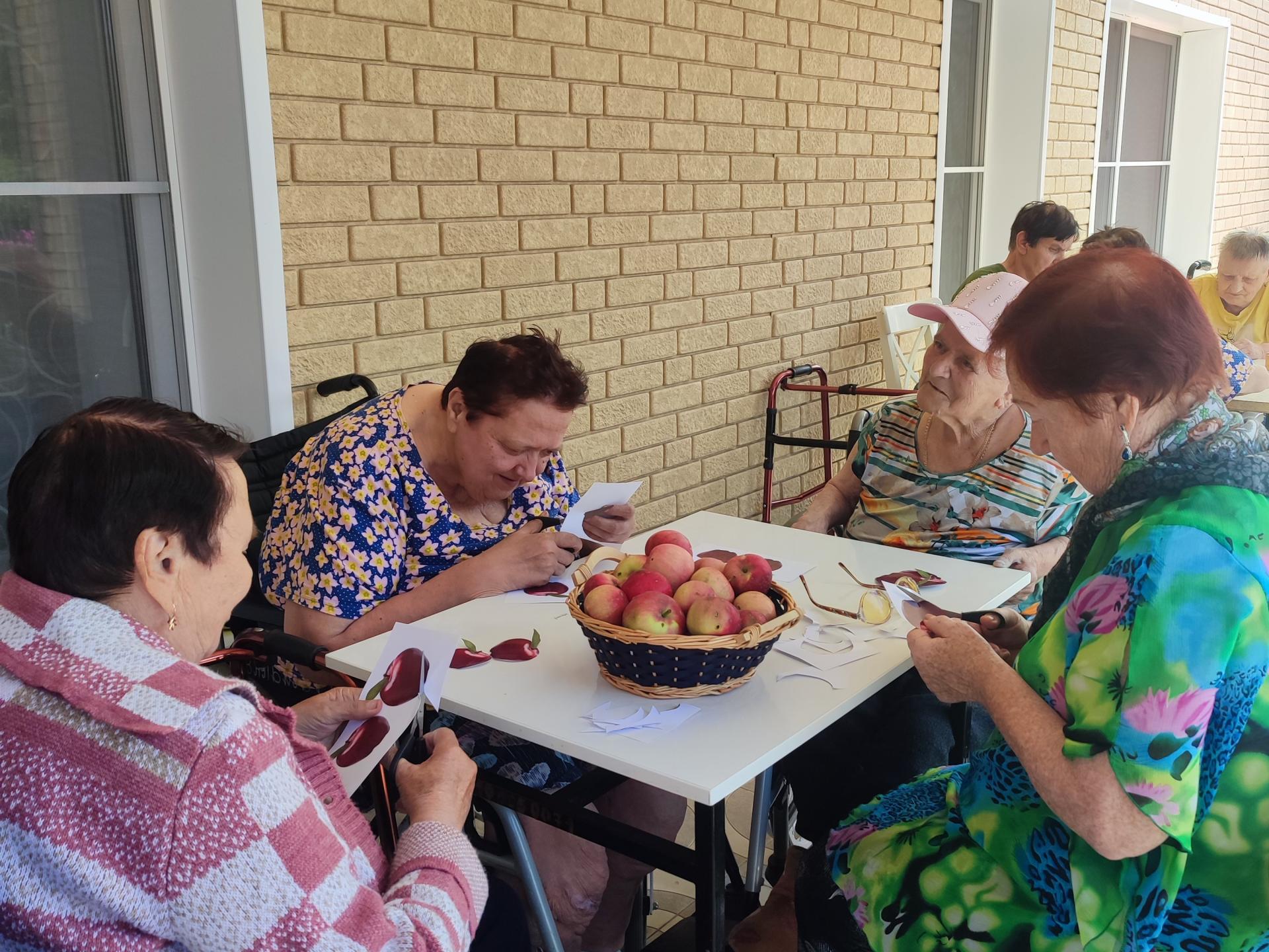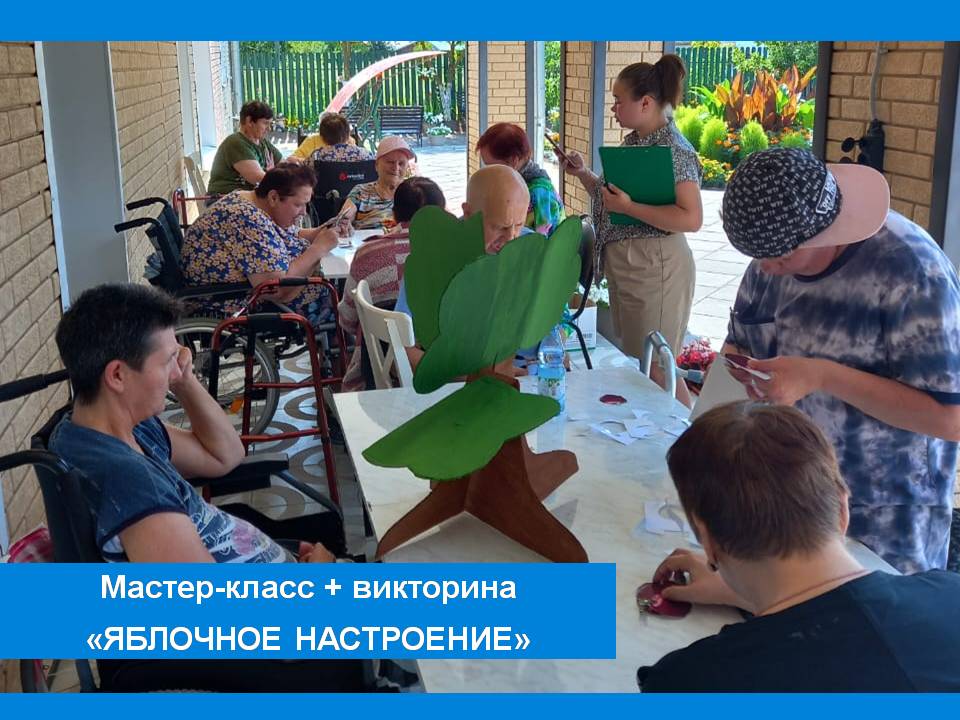 Жители Вязниковского Пансионата Злобина Любовь Ивановна и Идрисова Наталья Игоревна поделились яблочным настроением со своими друзьями-жителями отделения милосердия с. Сарыево. Добрая встреча прошла в виде викторины: поговорили о русских традициях, связанных с этим полезным фруктом, вспомнили сказки и пословицы, где говорится о яблоках. Вспоминая названия сортов, все дружно изготовили яблоньку для празднования «Яблочного Спаса». В заключении  все вместе угостились вкусными ароматными гостинцами.