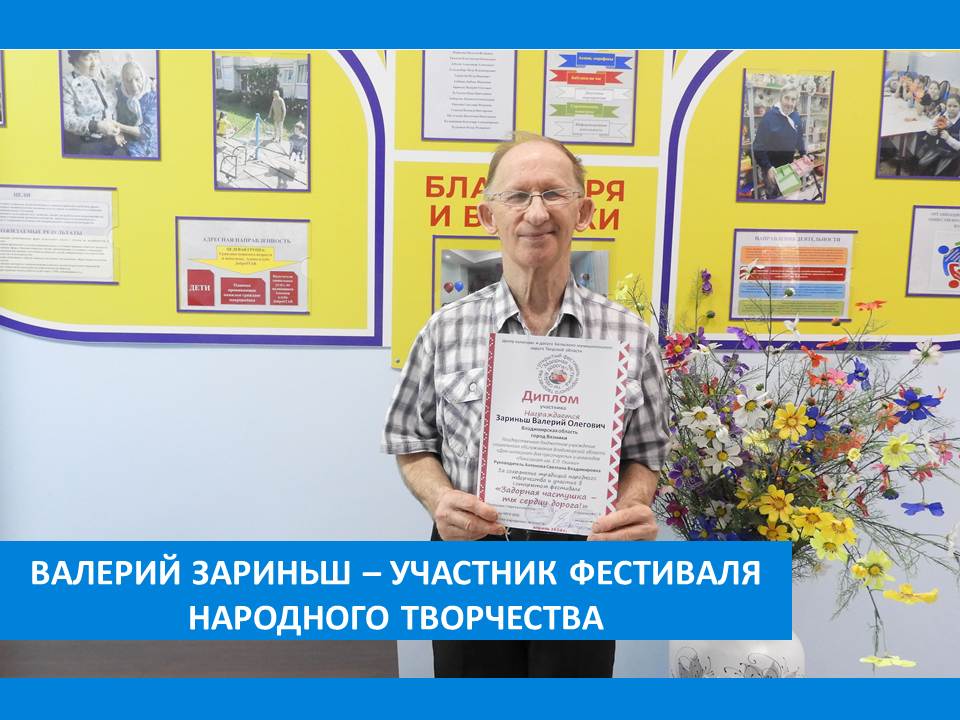 Так называется фестиваль, в котором принял участие житель Вязниковского Пансионата Валерий Зариньш.