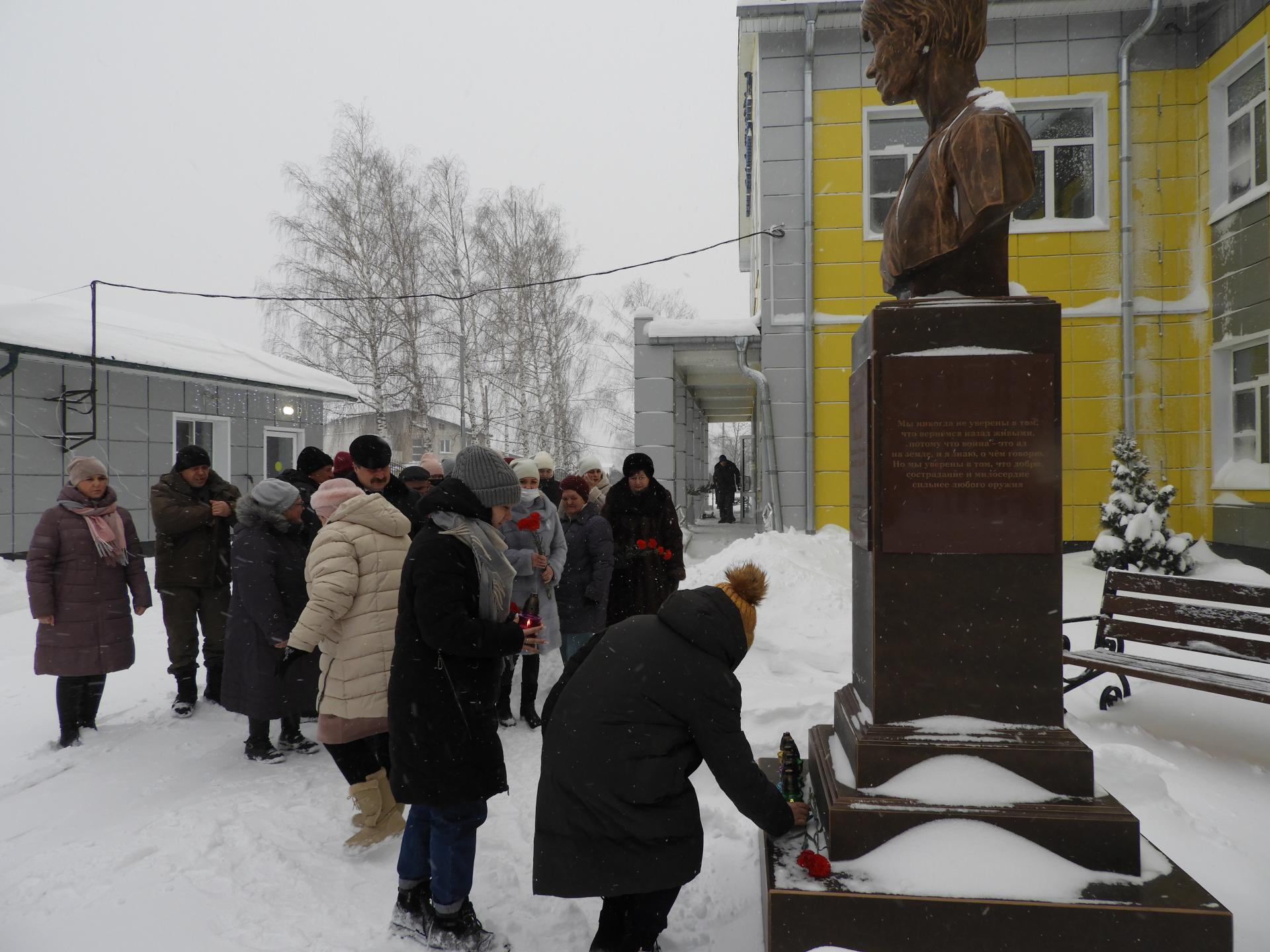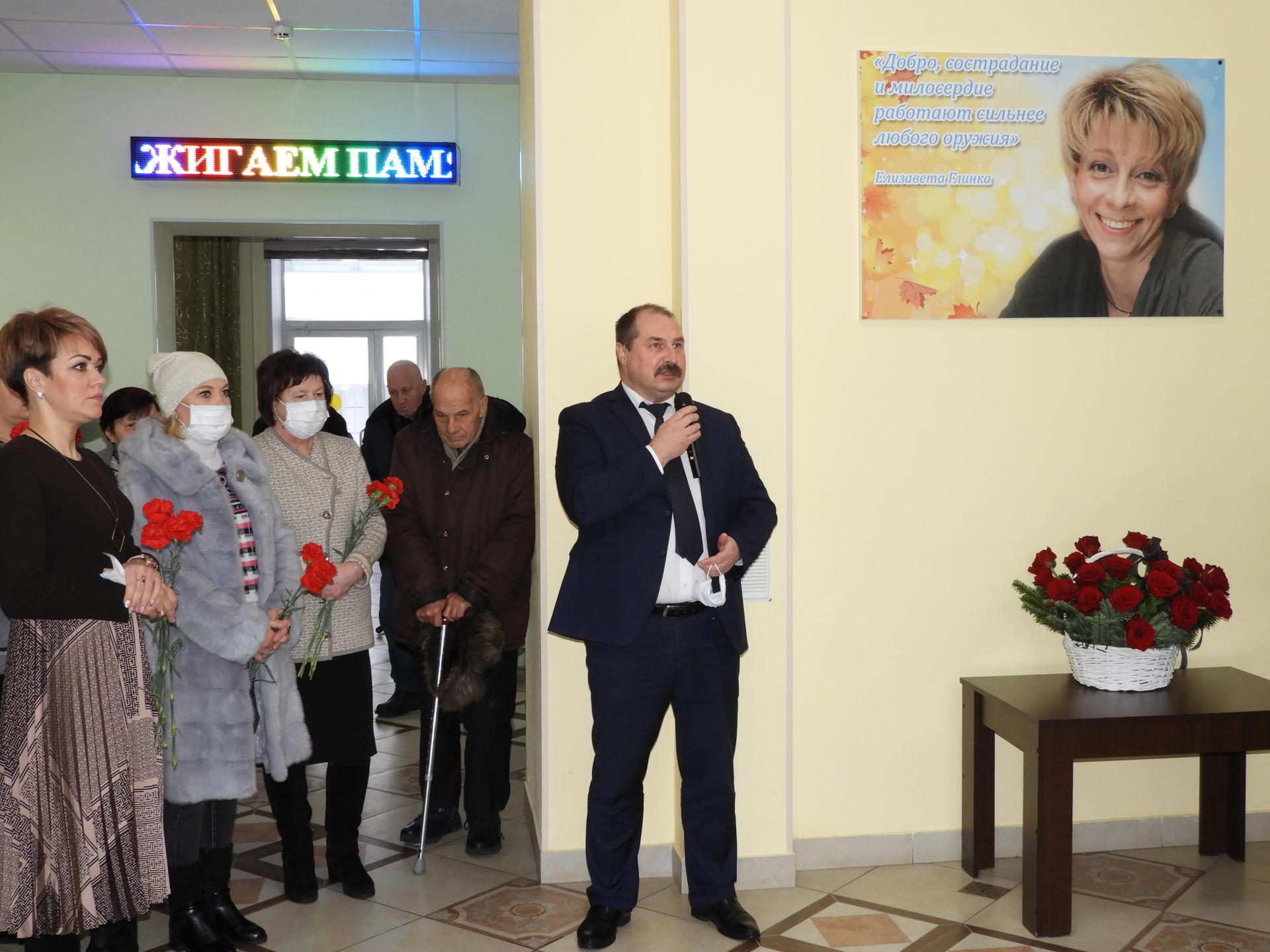 На памятном мероприятии присутствовали администрация района, волонтёры, жители и сотрудники Пансионата. Со словами глубокой скорби и благодарности  выступили Глава администрации Вязниковского района И.В. Зинин, директор отдела социальной защиты населения Вязниковского района Г.В. Смирнова и директор Пансионата Е.А. Сергеева. Память всех погибших почтили минутой молчания, после чего к бюсту Е.П. Глинки возложили цветы и свечи.