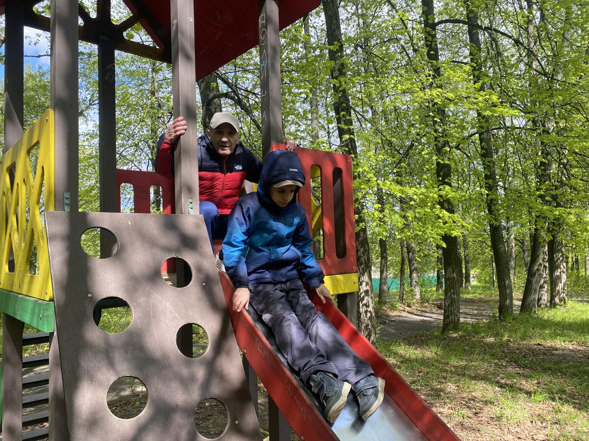 Серебряный волонтёр пансионата, Лебедев Александр Алексеевич, активист различного рода мероприятий, в том числе один из участников проекта #ВнукиДеда. Сегодня Александр встретился со своим внуком Тимофеем. Приятно осознавать, что именно в этой семье дедушка важен и нужен. Вместе играли в футбол, катались на горке, качелях, бегали и много смеялись. Прогулка в парке принесла новый заряд бодрости на весь день и отличное настроение. В завершении встречи дедушка подарил внуку сладкий подарок