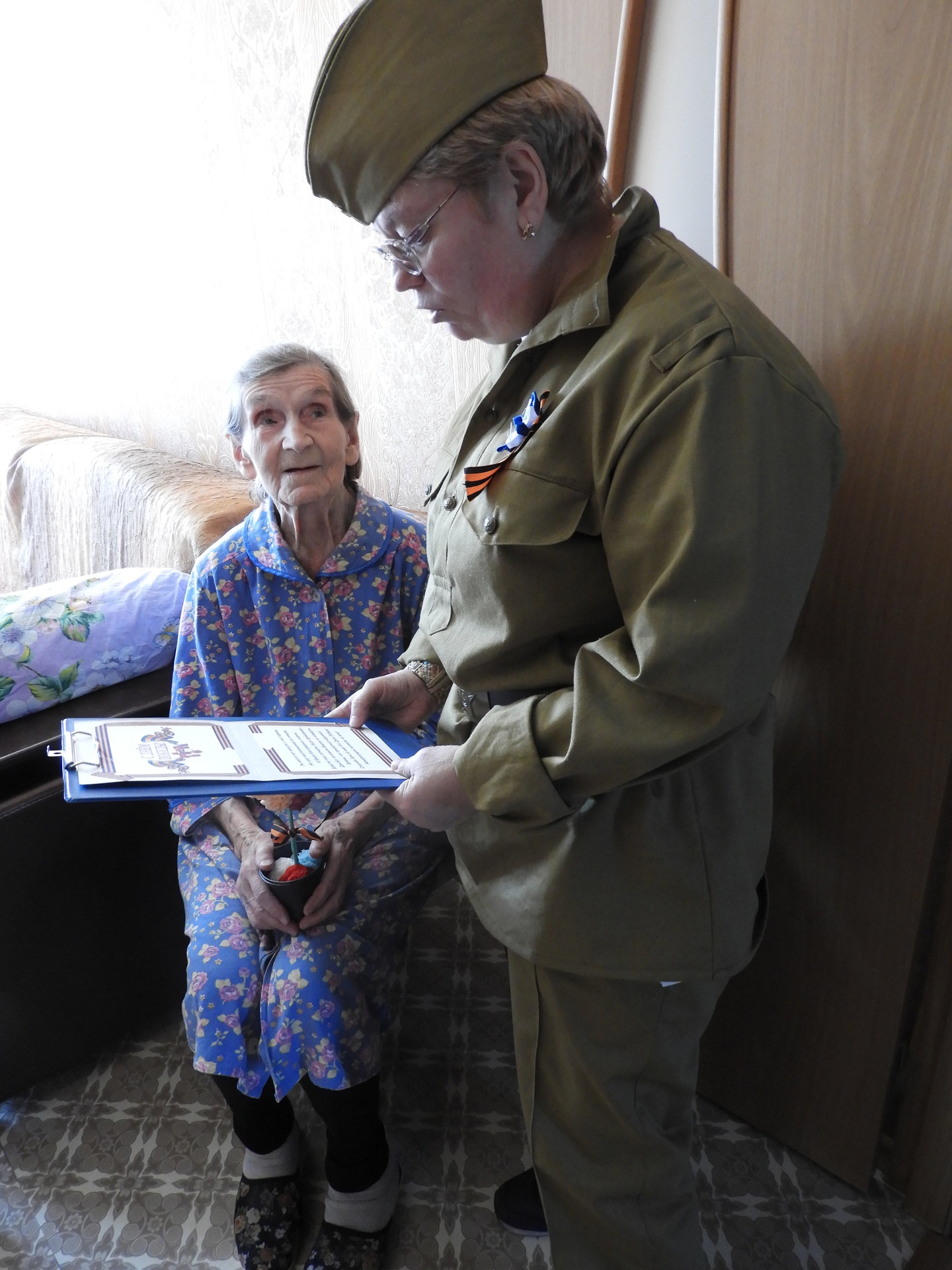 В последние апрельские дни Вязниковским Пансионатом, сотрудниками и серебряными волонтёрами, была организована благотворительная акция «Живая память» — это адресное посещение вдов ветеранов ВОВ с поздравлением наступающего Дня Победы. Приятные слова и стихи бабушки принимали с огромной благодарностью, но слёзы наворачивались на глаза от тех тяжёлых воспоминаний, которыми они делились.