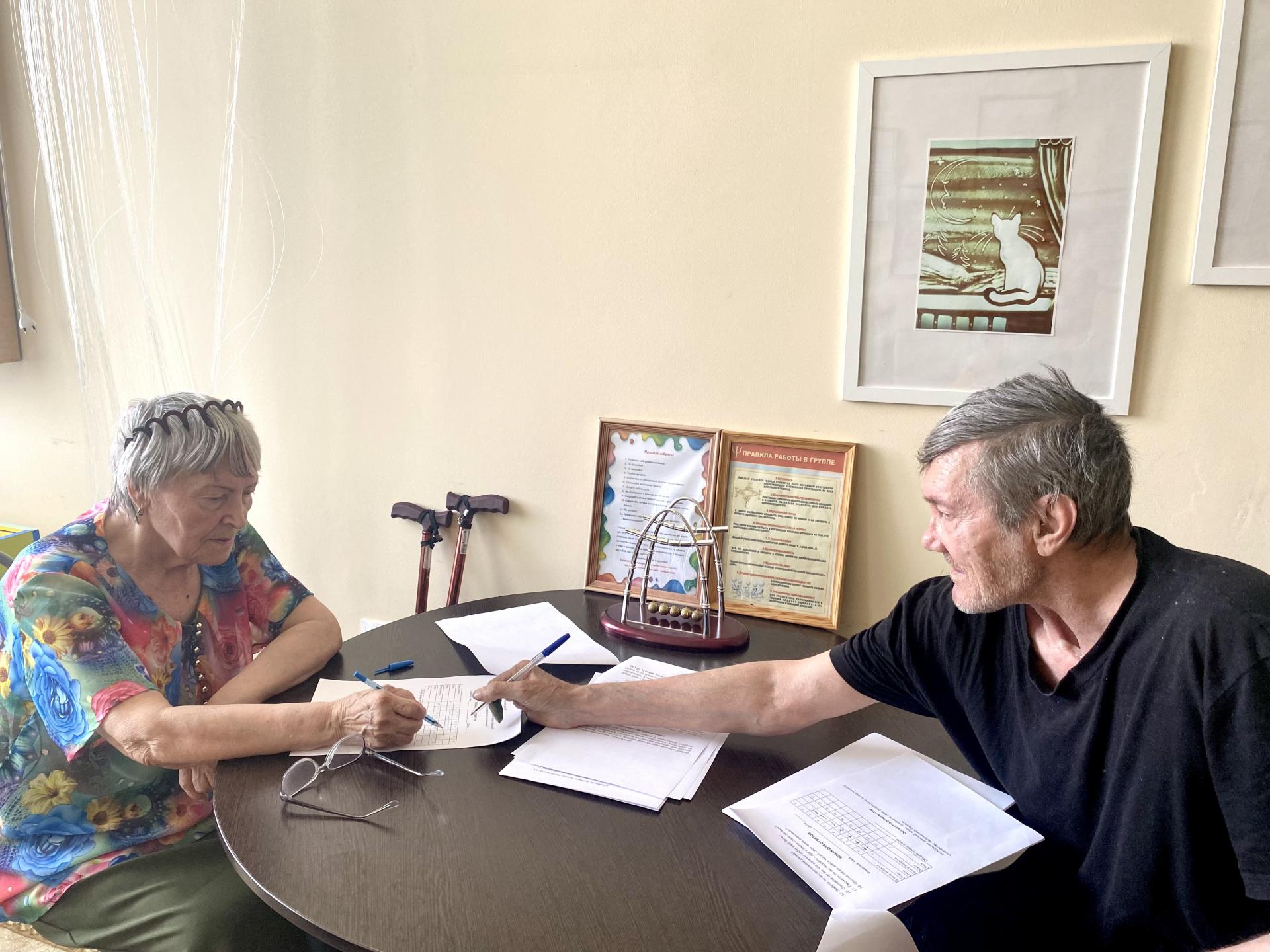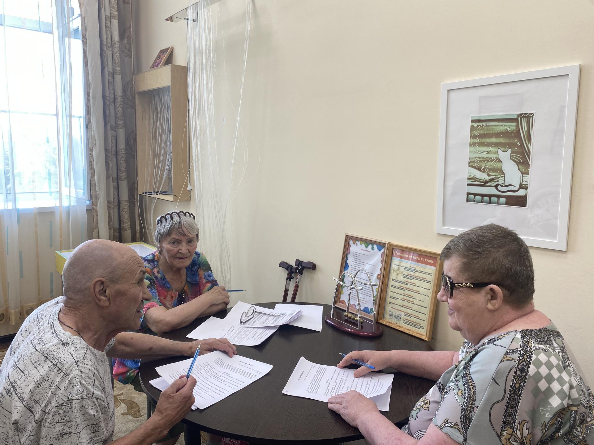 Для получателей социальных услуг Вязниковского Пансионата в рамках проекта «Активное долголетие» в комнате психологической разгрузки проводится цикл мероприятий по «Добрососедству». На первых этапах занятий, участникам мероприятия предлагалось пройти несколько небольших тестов для того, чтобы понять «Обладают ли участники добрым нравом и насколько?». После, все дружно приняли активное участие в мини-тренинге «Приятный разговор» и дискуссии в форме круглого стола, где затрагивались темы о нравственных качествах и с какими актуальными проблемами помогают справиться хорошие человеческие отношения. Жители Пансионата делились примерами из жизни, анализировали ситуации, рассуждали о негативных и положительных поступках. В завершении каждый участник подарил друг другу прекрасное настроение и теплый душевный настрой.