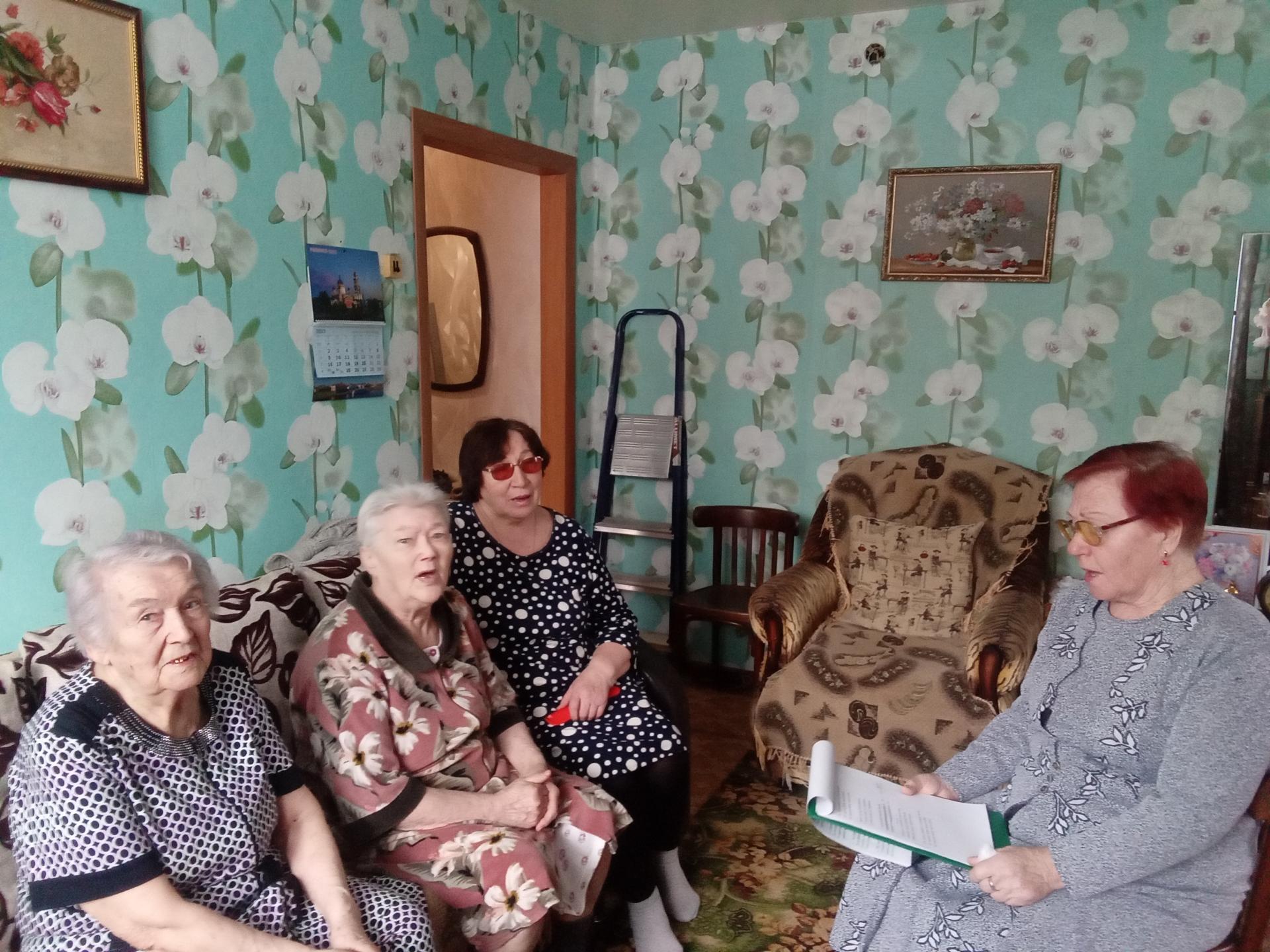 Серебряный волонтёр Пансионата Любовь Ивановна Злобина посетила одинокую пенсионерку Валентину Васильевну Понамарёву, которой недавно исполнилось 90 лет. Поздравляя с юбилейной датой, Любовь Ивановна подарила календарь с символом года и преподнесла творческий подарок – музыкальную открытку «Легко на сердце от песни весёлой». Вместе с юбиляршей, социальным работником и соседкой, которая тоже зашла на «огонёк», пели любимые старые добрые песни: «Ой, мороз, мороз», «Каким ты был», «Виновата ли я», «Старый клён», «Кадриль» и др.