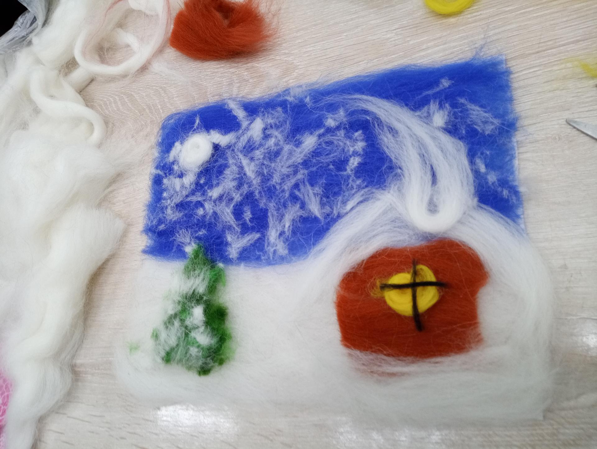 Шерстяная живопись процесс довольно кропотливый, но очень интересный и творческий . Полученный результат стоил потраченных усилий -   созданы настоящие зимние шедевры.